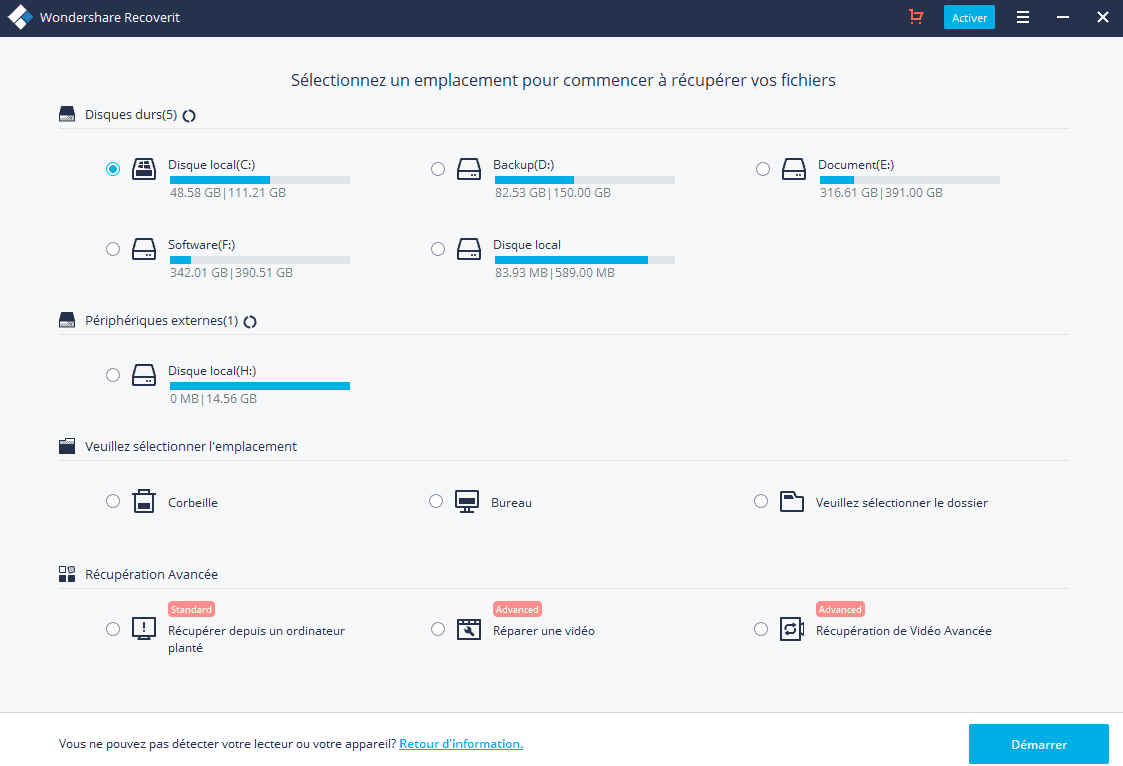 Recoverit est un outil puissant, mais pour être sûr de pouvoir récupérer des fichiers complets et intègres, nous vous conseillons d’agir au plus vite après une perte de données pour éviter que celles-ci soient écrasées sur votre support de stockage.