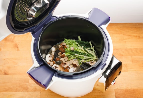 Malgré une puissance moyenne de 1200 watts, il possède 7 modes de cuisson : cuisson douce, cuisson sous pression avec température modulable de 109° à 115 °C, cuisson à la vapeur, mijotage, dorage, réchauffage à 70 °C, ainsi qu’un maintien au chaud à 64 °C. Il est donc possible qu’il remplace assez vite votre micro-onde et votre cocotte-minute !