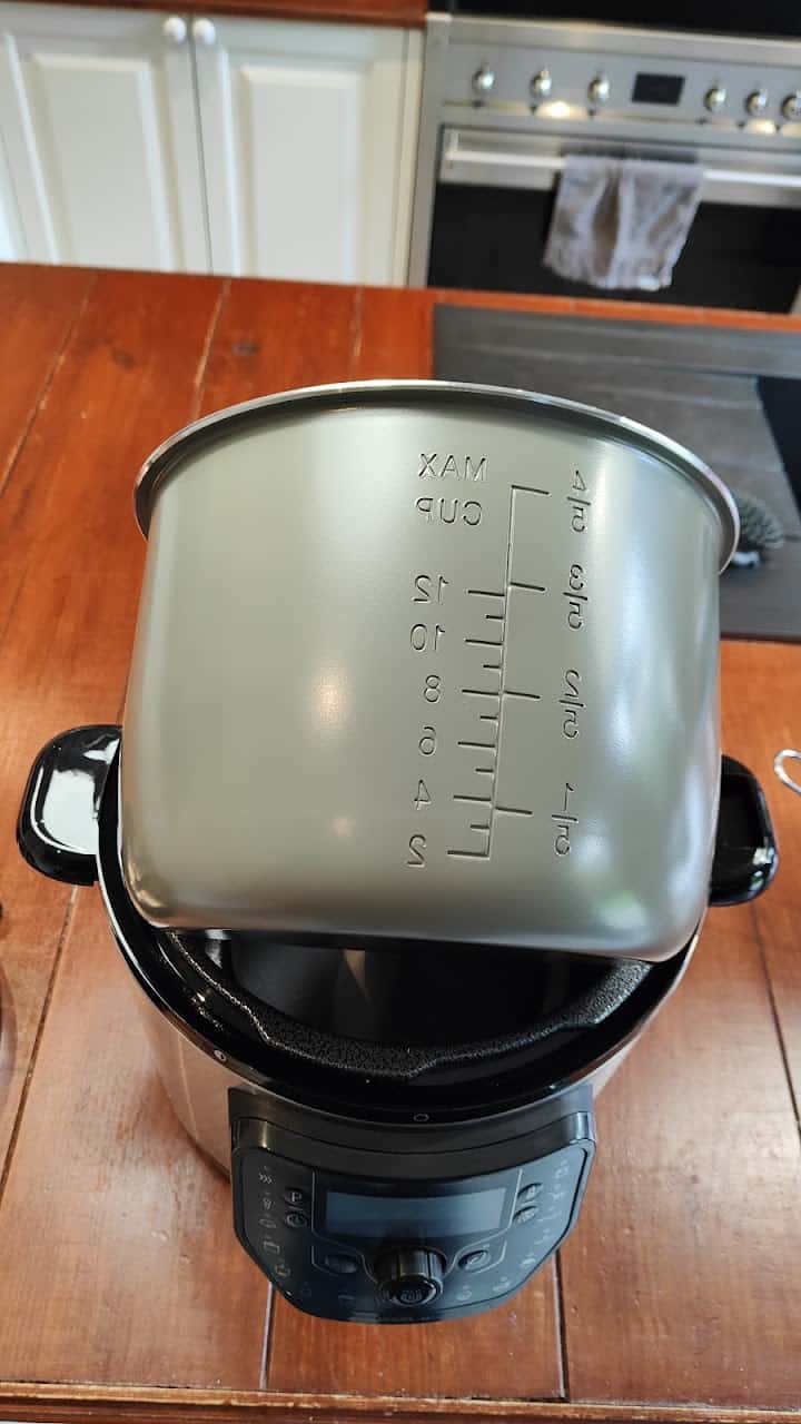 Notons néanmoins un inconvénient majeur par rapport au Cookeo : sa cuve de cuisson ne possède pas de poignées, ce qui peut rendre la sortie d’aliments brûlants un peu acrobatique.