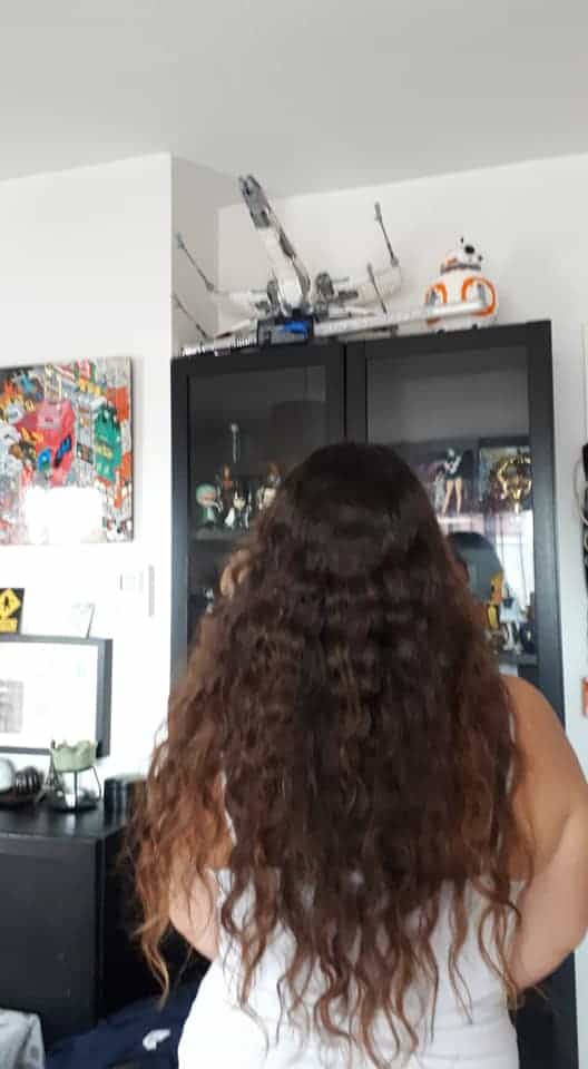 Donc… Je vous avoue que le test à chaud sur des cheveux fins, abîmés et tout juste humides, le résultat n’était pas probant : de légères ondulations, avec une durée de vie de 3h tout au plus.