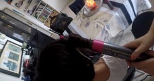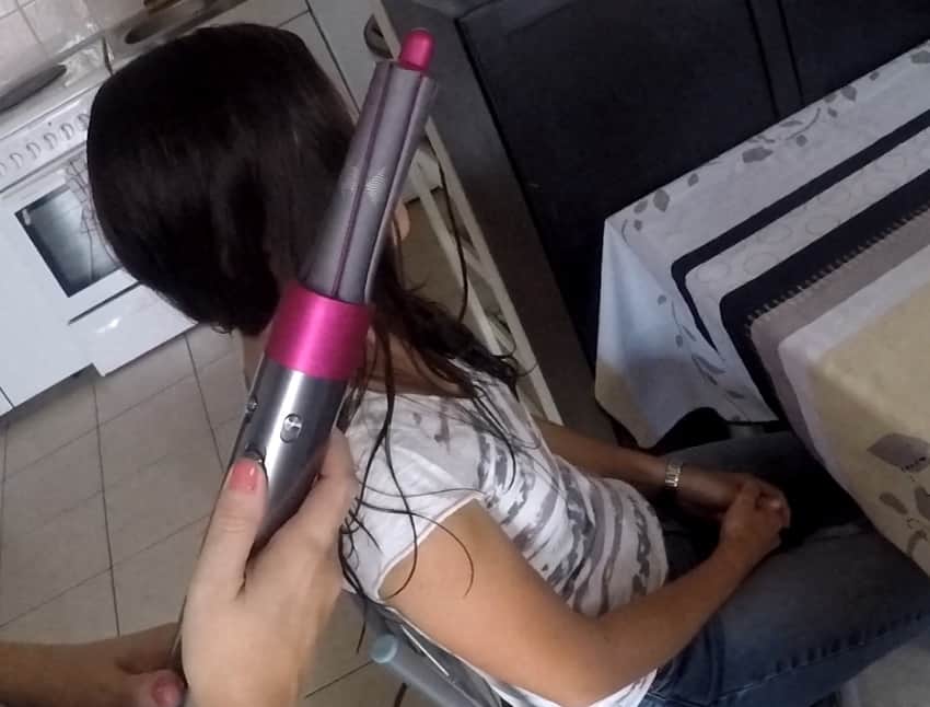 La prise en main est de loin surprenante ! Je ne vous cache pas, cela fait très bizarre de voir la mèche s’enrouler toute seule comme par magie ! Mais rien n’est plus simple à utiliser au final, et surtout : pas de risque de se brûler ! Je devais avoir 15 ans la dernière fois que j’ai touché un fer-à-boucler et ma nuque sen rappelle encore (petit boucan…).