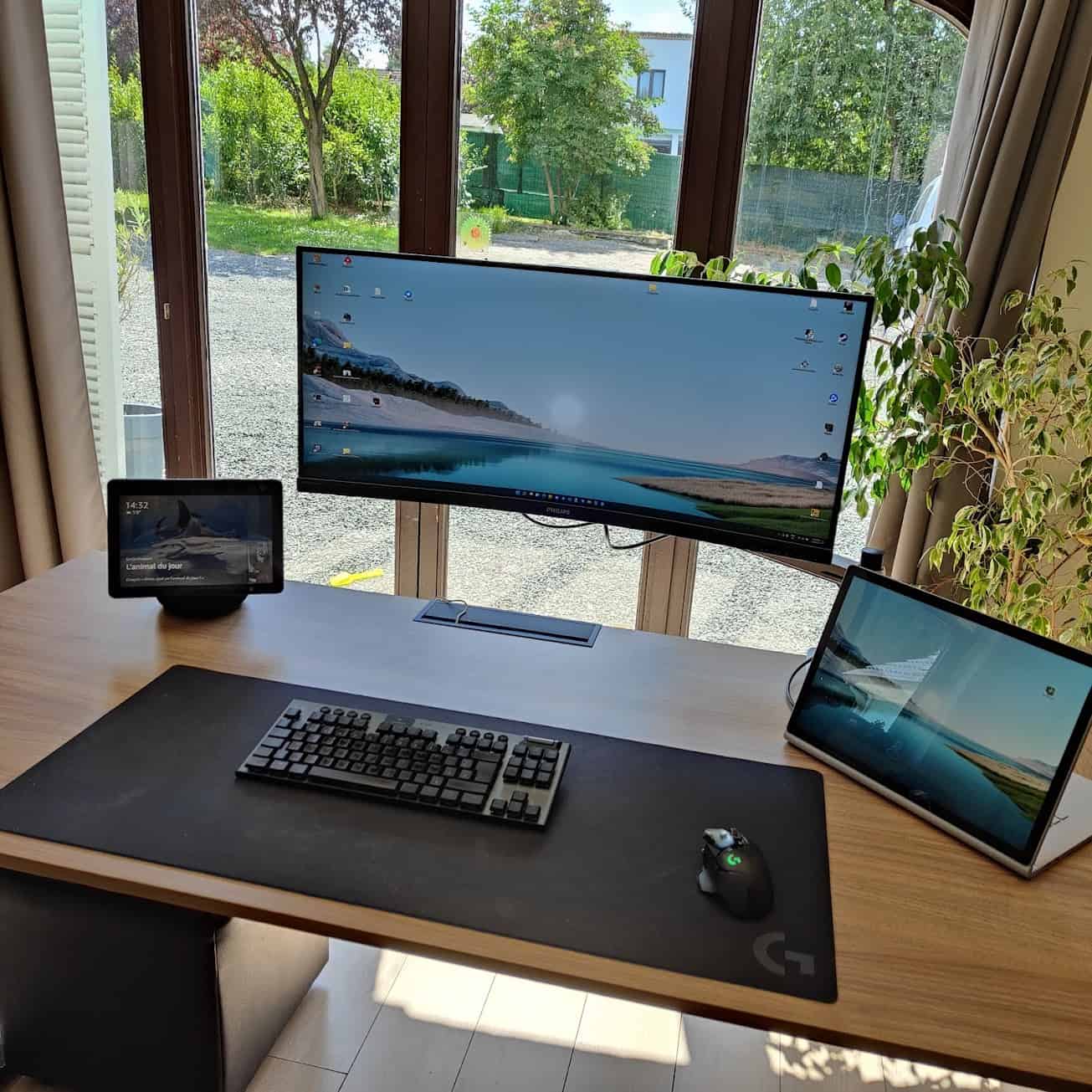 Côté audio, le système son 2.1 permet de relever le niveau par rapport aux précédents modèles sans pour autant atteindre des sommets. On est encore un cran en dessous des enceintes intelligentes pour l’écoute musicale, mais ce n’est pas vraiment ce qu’on lui demande. Le son est plutôt bien équilibré et il n’y a pas de distorsion à signaler. Pour les appels vidéo ou le streaming d’appoint, cela plus que correct.