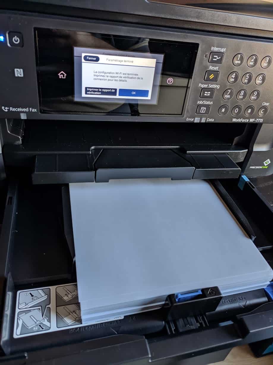 Avec le travail à la maison, disposer d’une imprimante multifonction devenait de plus en plus important. Après une analyse du marché, j’ai opté pour une Epson Workforce WF-7710, assez polyvalente et plutôt abordable.