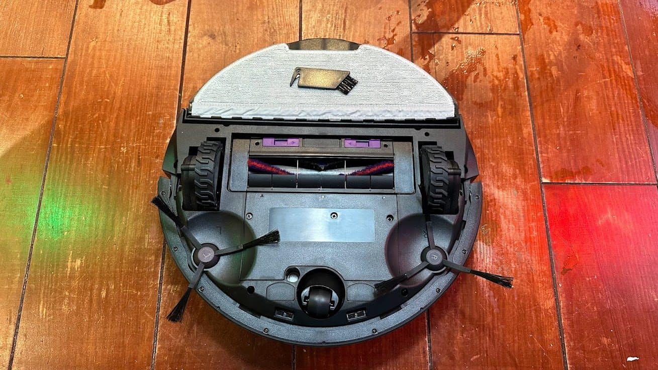 Sa puissance d’aspiration est de 4000 Pa et même si ce n’est pas le plus puissant du marché, c’est suffisant pour la grande partie des situations. Il est par ailleurs équipé de deux brosses rotatives récupérant la poussière à travers une brosse centrale optimisée en forme de V.