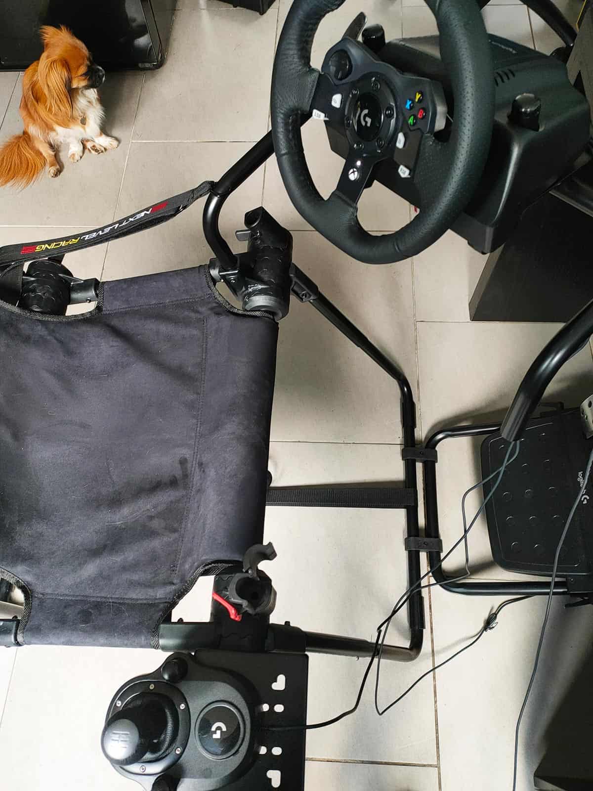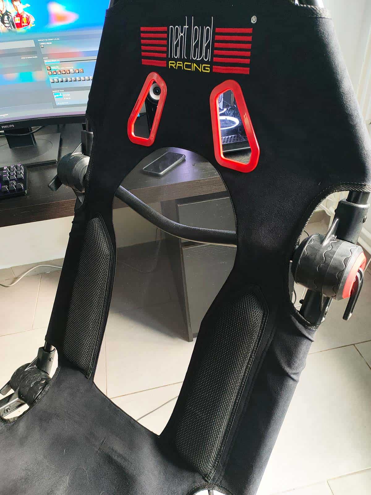 Ce que j’apprécie chez le F-GT Lite, c’est qu’on sent qu’il a été conçu par des passionnés qui ont pensé à tout afin d’assurer une expérience utilisateur la meilleure qu’il soit. Par exemple, on peut faire coulisser le support pour le pédalier en desserrant simplement quatre fixations pour l’ajuster à la taille de ses jambes. Parlons également du support pour le volant qui s’ouvre un peu comme une portière afin de rentrer facilement dans le cockpit. Le dossier est quant à lui doté de deux coussinets qui assurent un confort non négligeable durant les longues sessions et d’une structure maillée afin de ne pas transpirer. Bref, le tout est bourré de chouettes petits détails et c’est très appréciable.