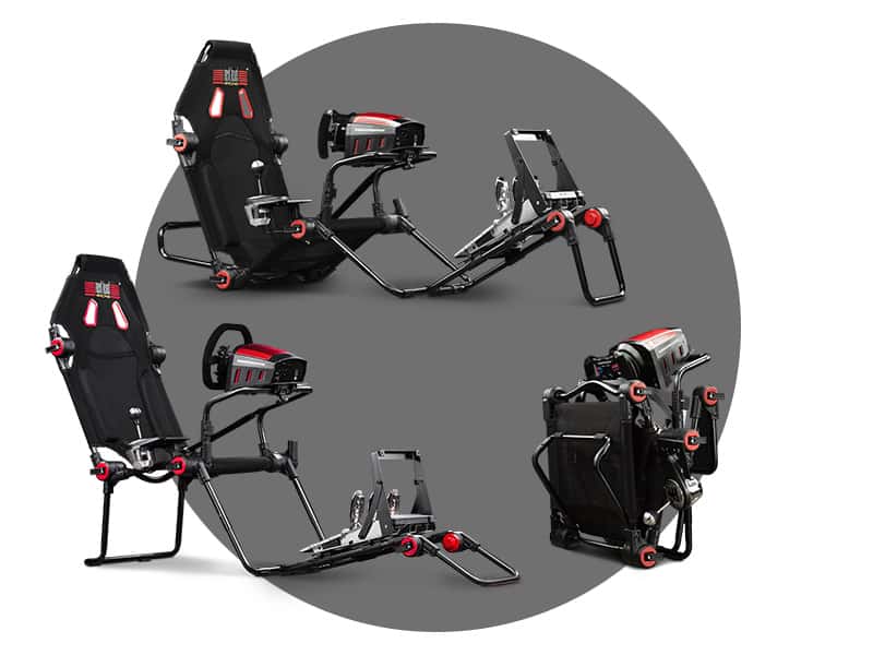 Si comme moi vous êtes fan de Sim Racing, vous savez que le prix des cockpits de course peut grimper très rapidement et qu’en plus de ça, ces jolis engins sont assez encombrants. Eh bien aujourd’hui, je vais vous parler d’un produit qui est l’anti-thèse de tout ça : le F-GT Lite de Next Level Racing. Et pour cause, avec son prix tournant autour des 300 euros, ce cockpit se révèle plutôt abordable comparé à la concurrence. Certes, on est sur un produit modulable en tissus qui n’a pas vraiment le look d’un siège baquet monté sur un châssis, mais le F-GT Lite a quand même pas mal d’avantages. Dans les grandes lignes, sachez que sa plus grande qualité est de pouvoir passer de position GT en position F1 en un clin d’œil, pour pouvoir ensuite être rangé super facilement.