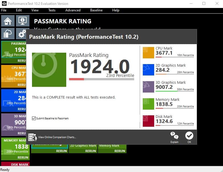 Afin de vous faire une idée sur le potentiel de la machine, j’ai pris soin de lancer un benchmark 3D avec l’outil PassMark. Ce dernier lance un tas de calculs 3D pour fournir un score final à la machine qui était de 1924 dans mon cas.
