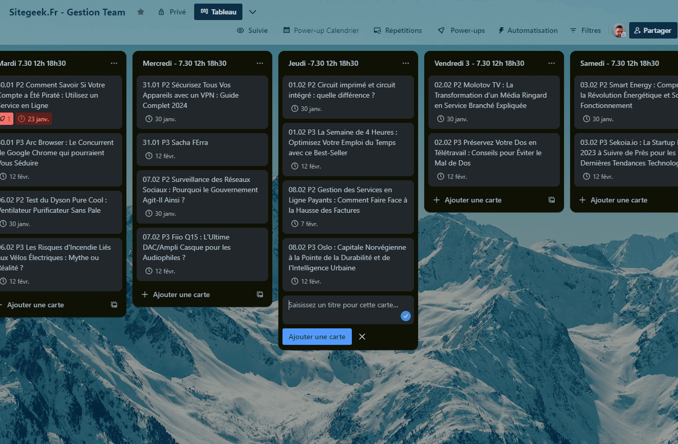 Le travail, les études et même la vie quotidienne peuvent parfois être une source de stress à cause des nombreuses tâches à accomplir. Il est donc essentiel de trouver des moyens pour organiser toutes ces tâches afin de faciliter leur suivi et leur réalisation en temps voulu. Dans cet article, nous allons vous montrer comment organiser vos tâches grâce à l’outil Trello, établi sur la méthode Kanban. Cet utilitaire vous permet d’organiser des listes et d’avoir une vue tableau de bord sur l’ensemble de ce que vous avez à faire. Voilà des années que j’organise mon travail sur Sitegeek avec cet outil, qui peut être collaboratif. Je regarde un peu du côté de Notion, mais ça me semble plus complexe!