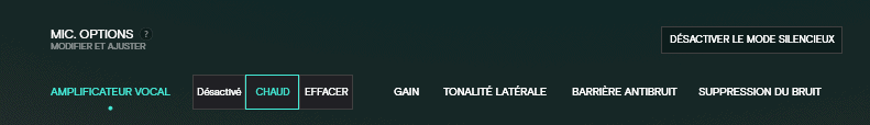 Et au niveau du micro, quelques options s’offrent à vous comme un amplificateur vocal, une suppression du bruit, une barrière anti-bruit (comprenez par là, la pression minimale de votre voix qui fera en sorte d’activer le micro)…