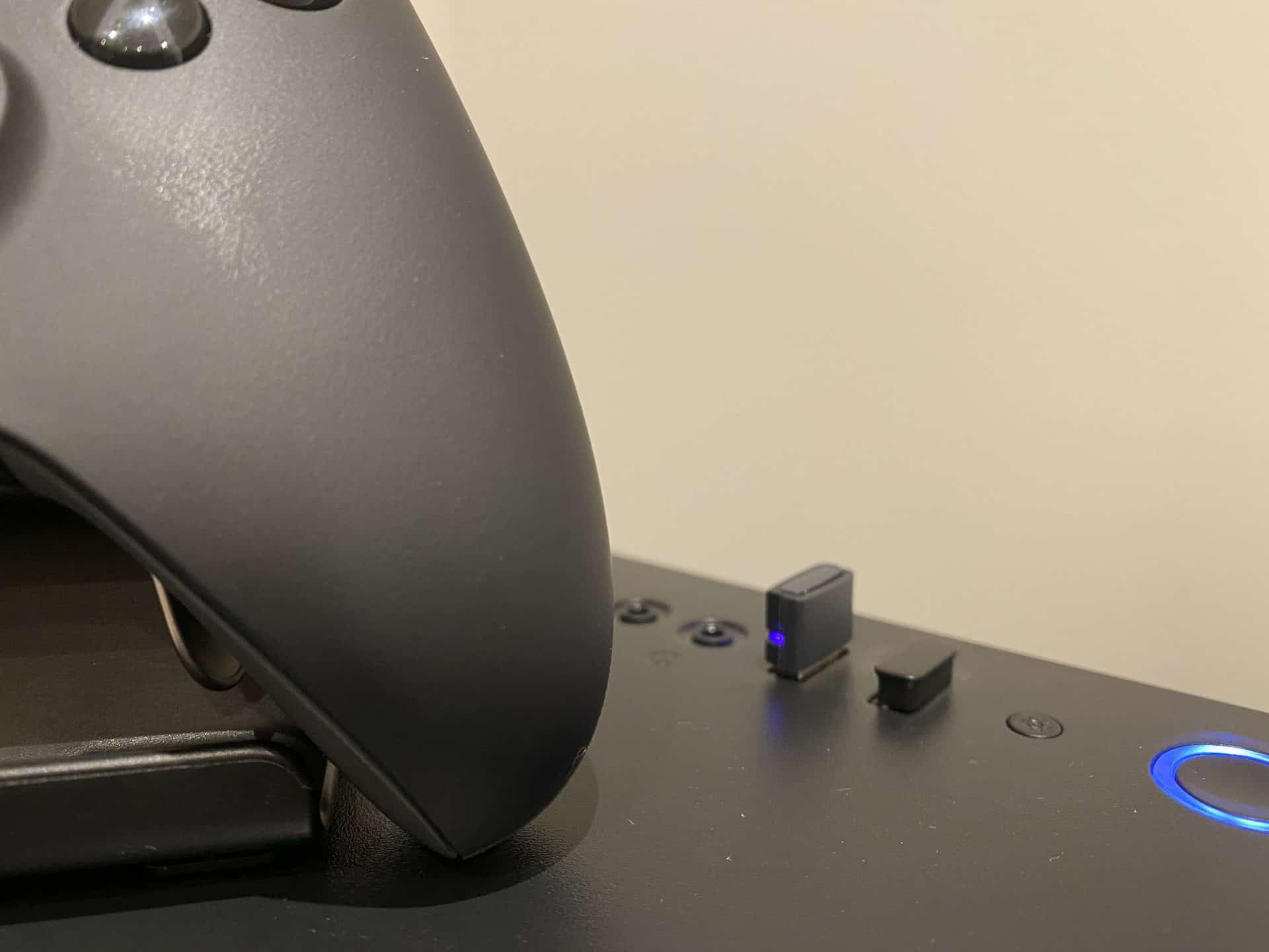 La particularité du EPOS GSP 670, c’est qu’on part sur un casque full wireless. Il est équipé d’un dongle 2,4 GHz qui permet d’une latence quasi nulle (et ça on aime quand on joue) mais aussi une connexion Bluetooth pour l’appairer à votre smartphone, votre tablette ou autre. On atteint 20 h d’autonomie en Bluetooth contre 16 en 2,4 GHz. De ce que j’ai pu tester, les promesses sont tenues, pour autant qu’on profite du casque à un volume correct. Et tant qu’on en est à parler de son dongle 2,4 GHz, sachez qu’il vous est possible de le connecter à votre console PS4 pour profiter de votre EPOS GSP 670 sur console.
