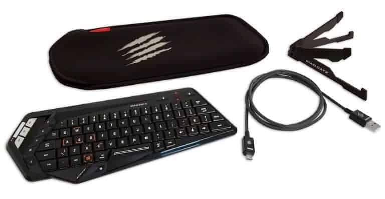 Mais ce qui lui rend vraiment honneur, ce sont ses petites touches surélevées, qui sont légèrement incurvées et lui donnent un toucher franc, on n’est jamais sur la lettre voisine par erreur. Ça fleure bon la qualité et ça ne couine pas pendant la frappe (notez ma résistance à insérer ici une vanne graveleuse). Du coup, même si on lui préfèrera un clavier plus grand pour un usage intensif, la taille « petite mais pas trop » des touches permet de garder un ratio encombrement-confort très agréable. Besoin de taper un SMS ? On le sort de sa petite pochette, un appui sur une touche pour le sortir de veille, et on envoie. Une petite séance de surf tranquille sur tablette, curseur de souris à l’appui ? Idem. Enfin, une touche Menu permet d’émuler le bouton Home d’Android, ce qui est vite pratique à l’emploi. La base antidérapante du Madcatz strike m est également très efficace, et j’ai aussi apprécié le fait qu’il se charge avec un mini USB, comme mon smartphone Samsung, évitant par-là même de m’encombrer d’un chargeur supplémentaire dans mon sac.