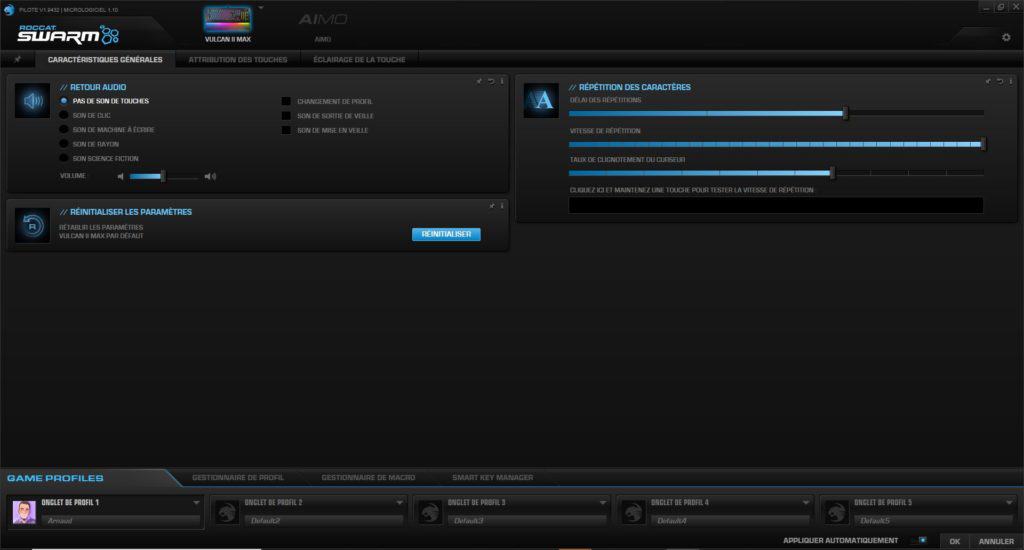 La seconde fonctionnalité est de vous permettre de gérer l’attribution des touches de votre Roccat Vulcan II MAX, de définir vos différents profils mais aussi de créer des macros. Un peu comme dans Excel, ces dernières permettent de définir une séquence de touches qui ne nécessitera plus qu’une pression sur la touche définie.