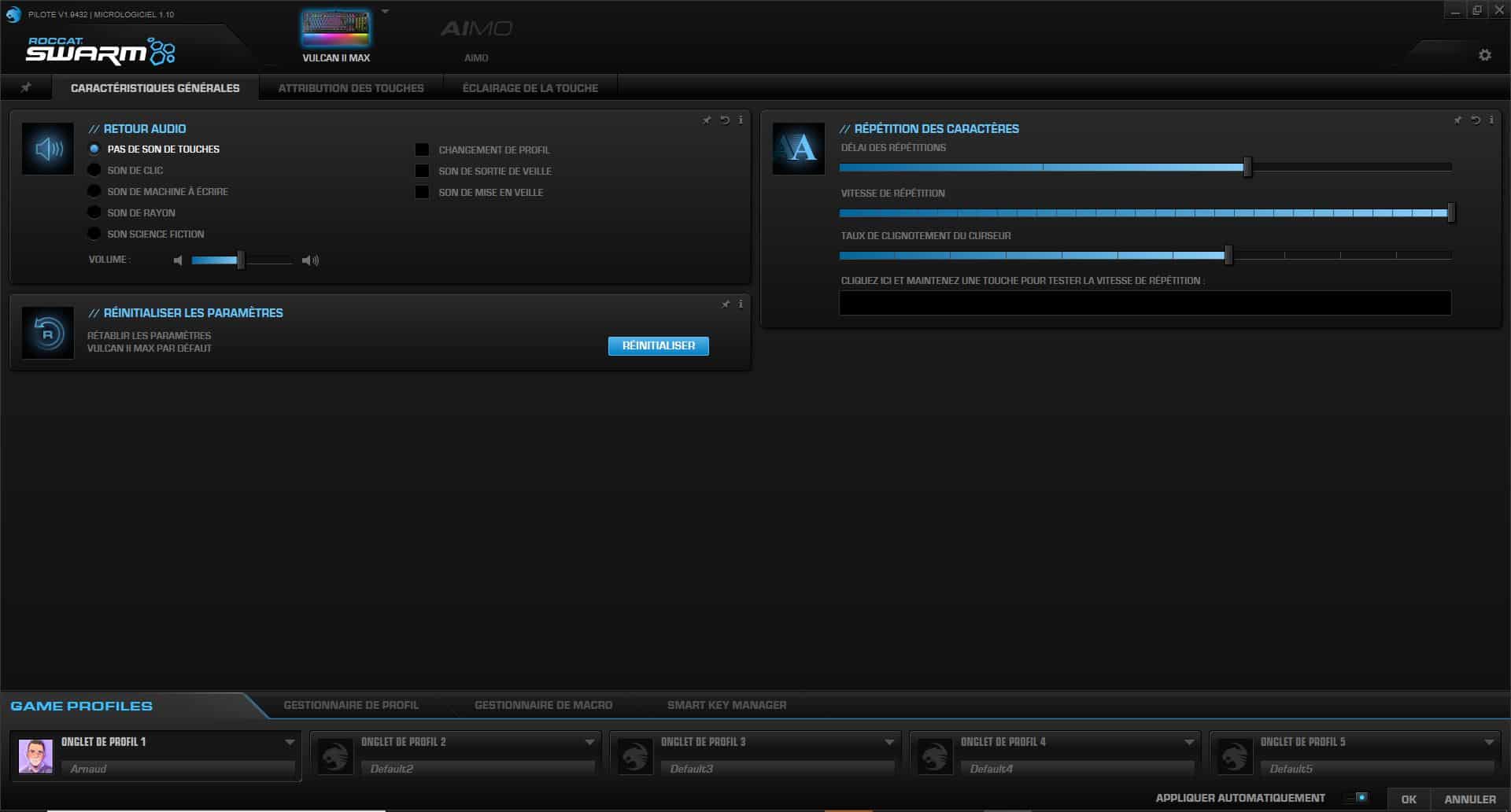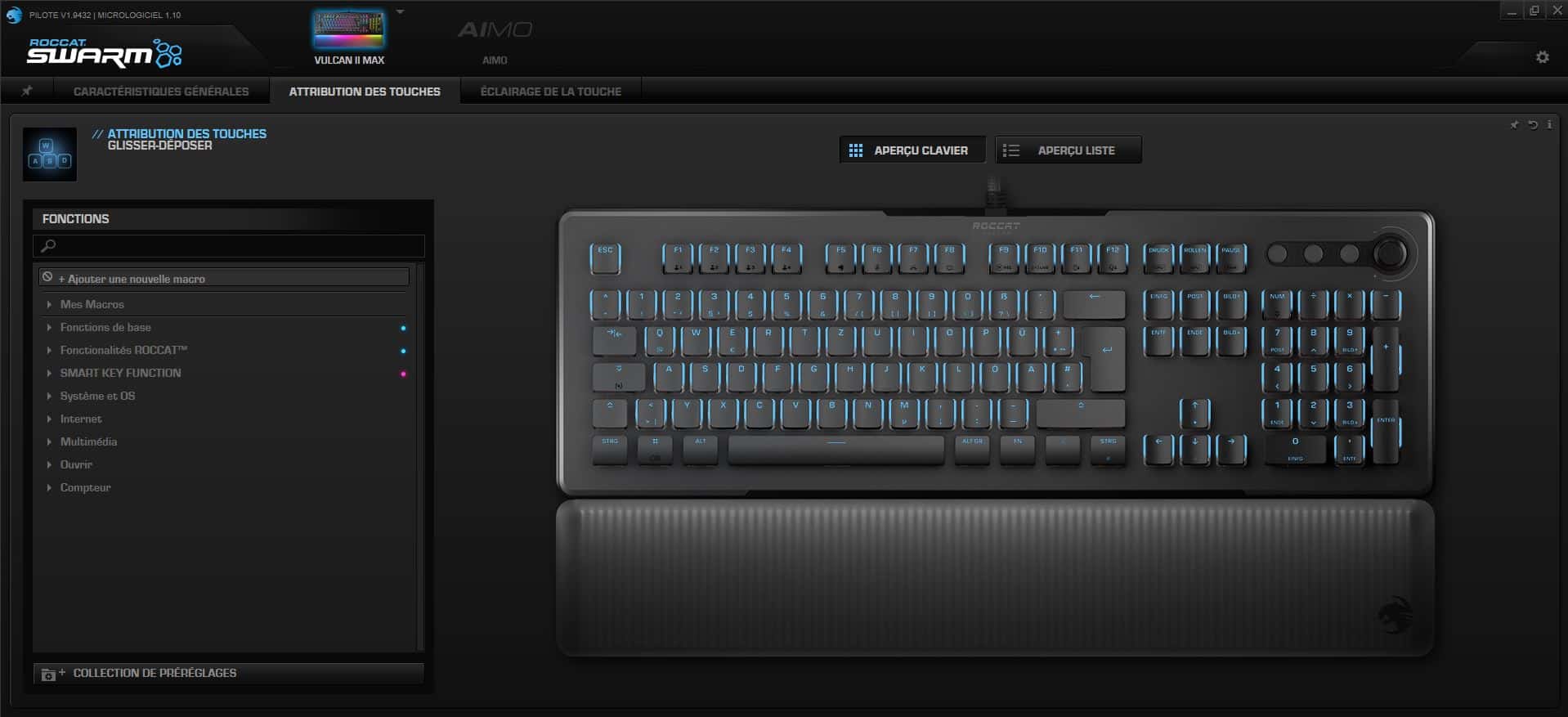 La seconde fonctionnalité est de vous permettre de gérer l’attribution des touches de votre Roccat Vulcan II MAX, de définir vos différents profils mais aussi de créer des macros. Un peu comme dans Excel, ces dernières permettent de définir une séquence de touches qui ne nécessitera plus qu’une pression sur la touche définie.