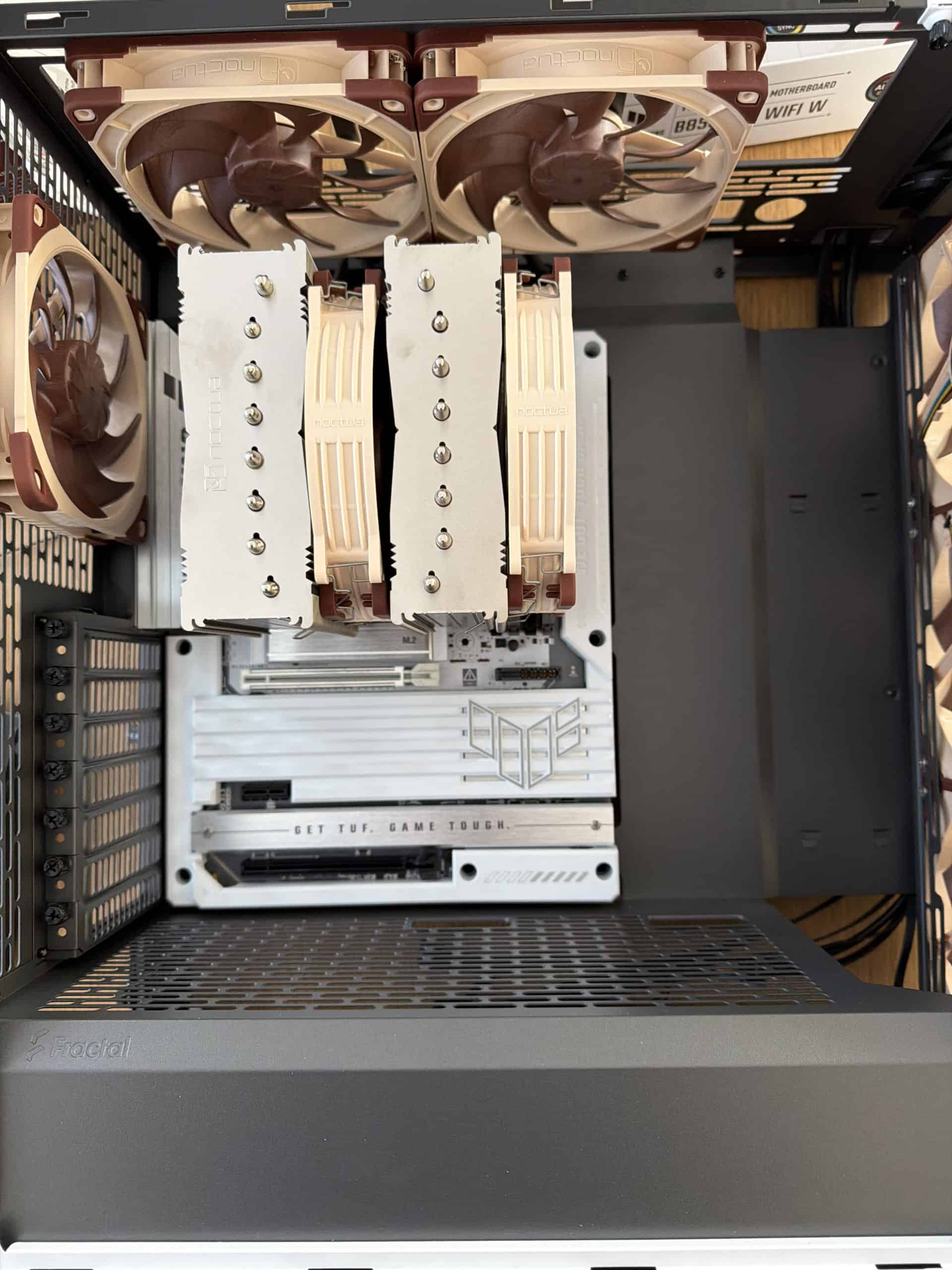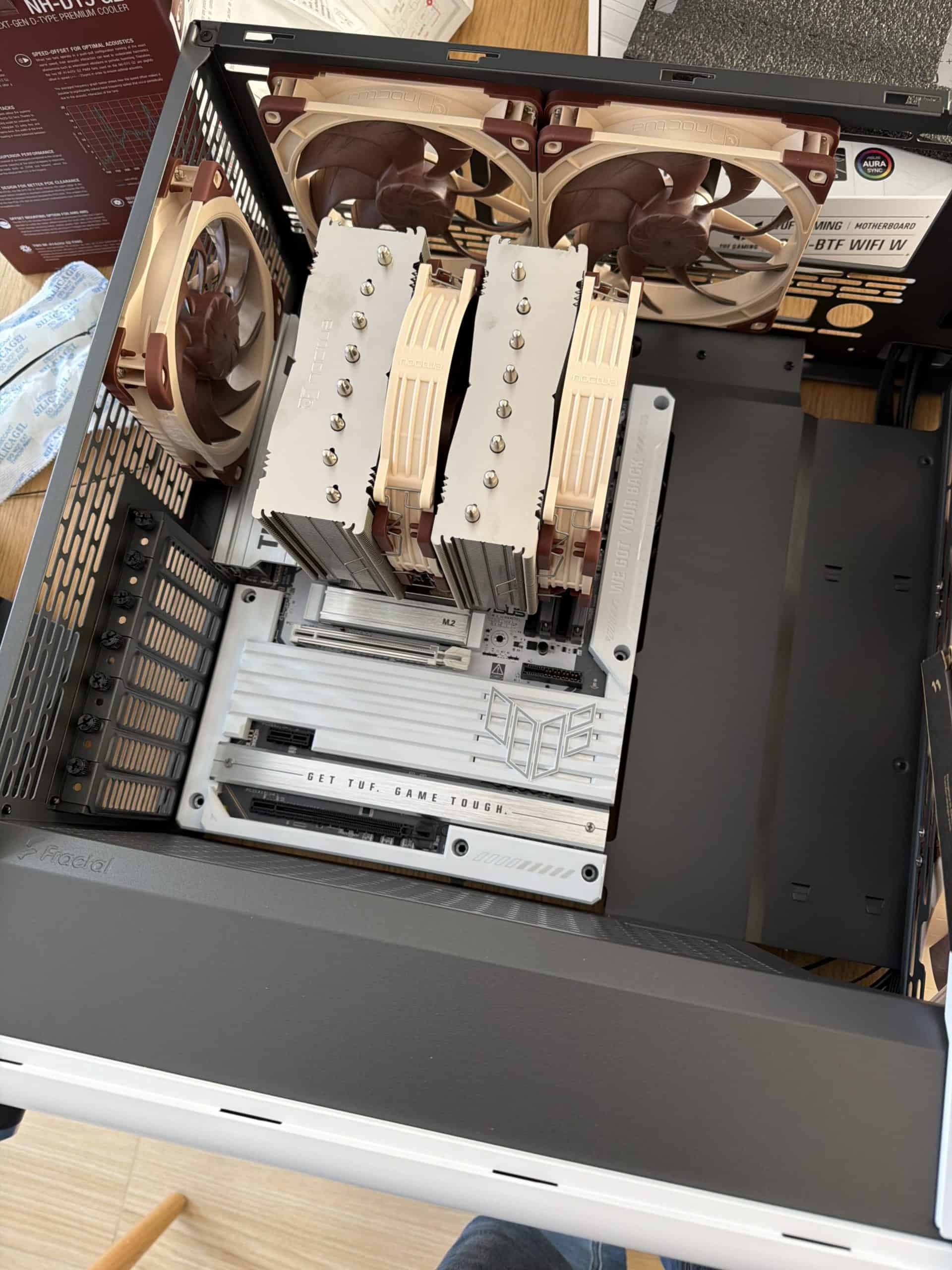 On a donc installé ma carte mère BTF dans un boîtier compatible (un ROG Hyperion adapté, car oui, il faut de la place derrière). La première chose qui frappe, c’est la facilité d’accès.