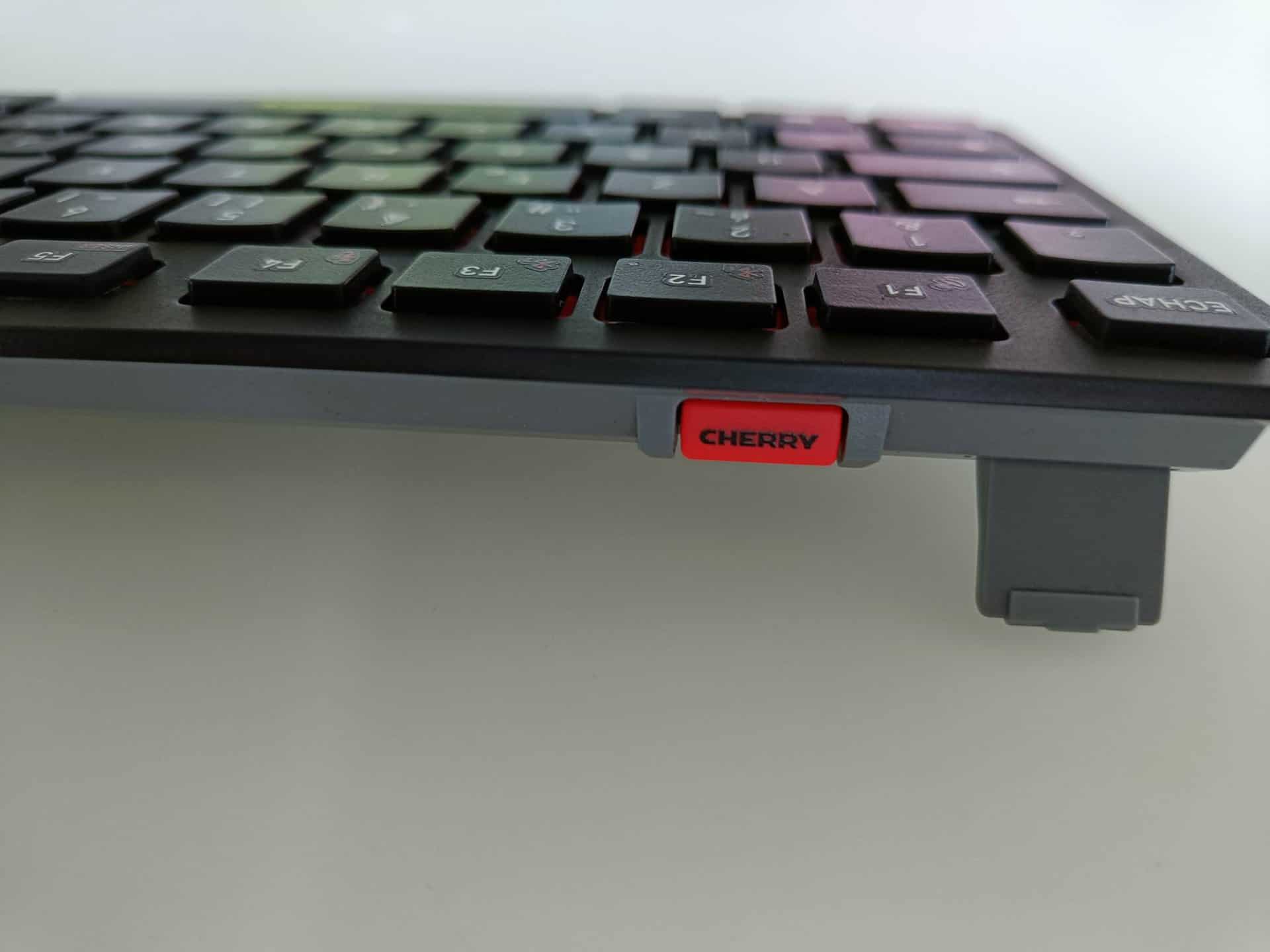 Le clavier ne dispose en effet pas de fil, mais son câble amovible USB-A vers USB-C vous permet de connecter le Cherry KW 9200 Mini à un terminal, et de le recharger en même temps. Néanmoins, avec son autonomie de plusieurs semaines grâce à sa batterie au lithium, la recharge ne sera pas souvent nécessaire. Sinon, en mode wireless, vous pouvez soit le connecter à votre PC de bureau, soit l’utiliser comme clavier Bluetooth avec votre tablette ou votre smartphone. Les touches F1 à F4 vous permettent de contrôler jusqu’à quatre terminaux en même temps et de basculer facilement entre deux canaux Bluetooth, un canal radio 2,4 GHz et un canal câblé.
