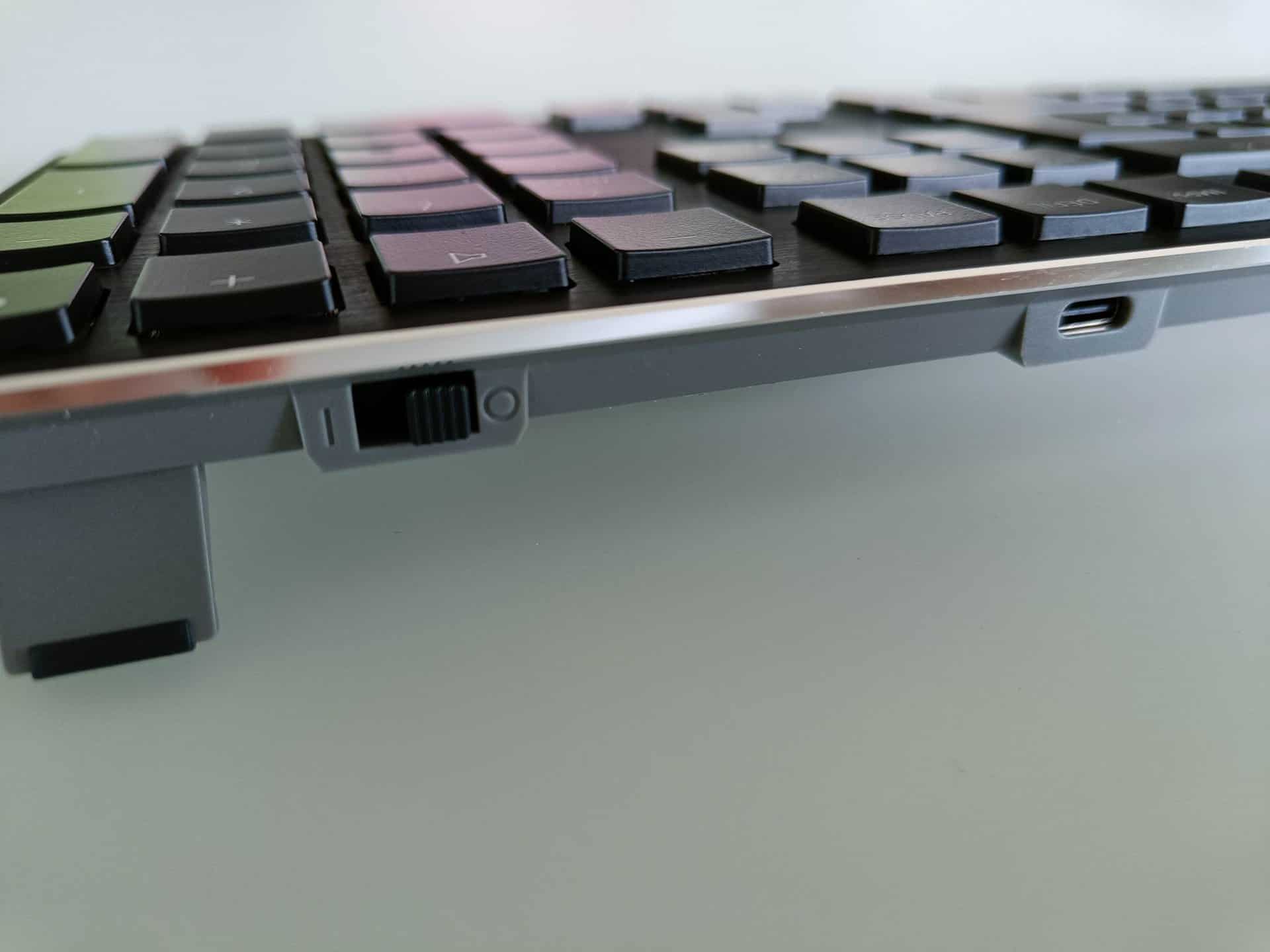 Afin d’être aussi opérationnel que possible, le Cherry KW X ULP offre 4 canaux qui permettent de connecter plusieurs appareils en même temps. Via l’une des touches dédiées, vous pouvez switcher de la connexion radio avec le récepteur USB, à l’un des 2 canaux Bluetooth 5.2 ou au mode filaire. Grâce à ces fonctions, vous pouvez sans problème contrôler votre PC, votre laptop, une tablette et même une console de jeu, dont trois sans fil. Une LED de couleur de la touche correspondante vous indique quel appareil est connecté.