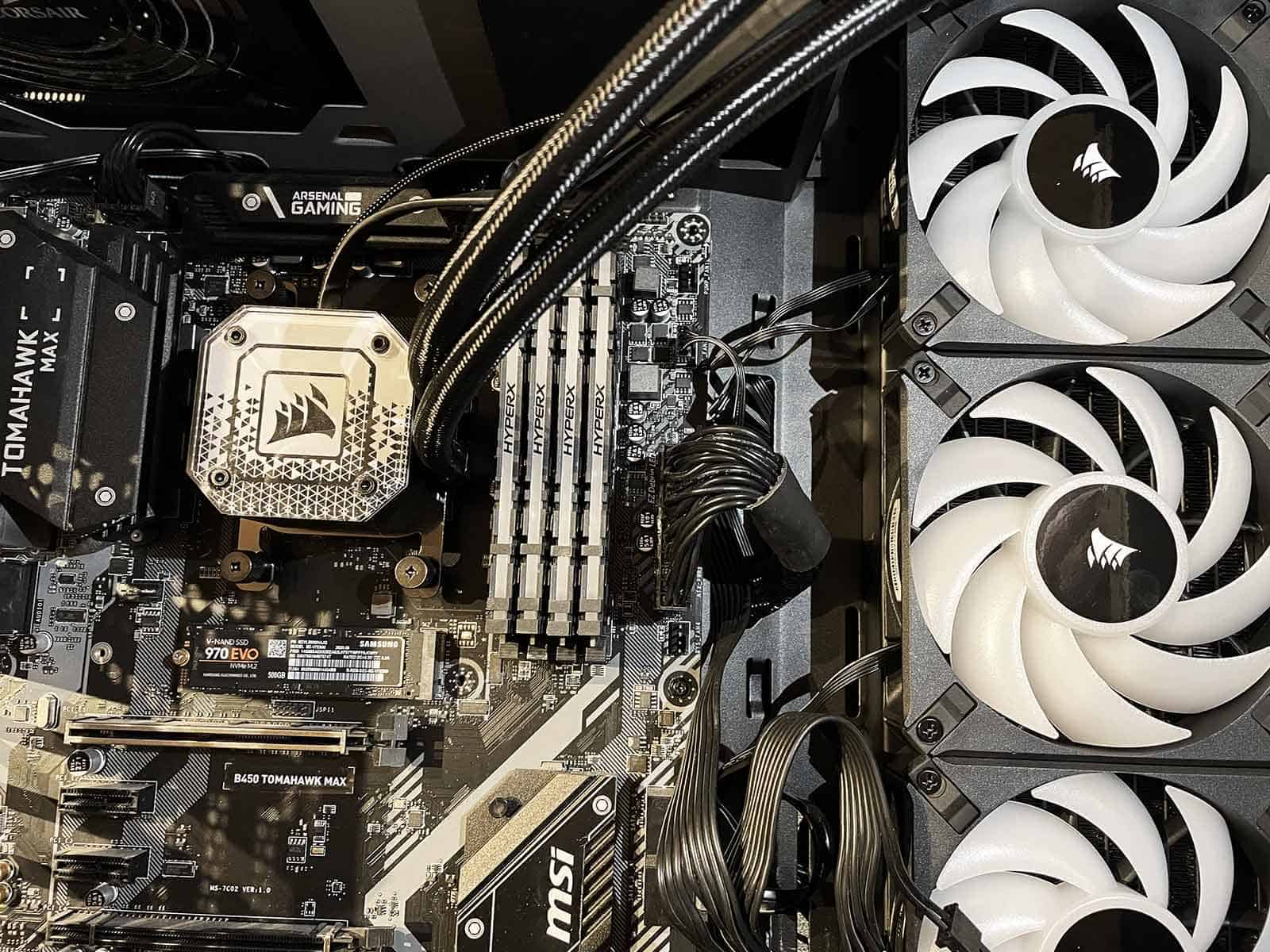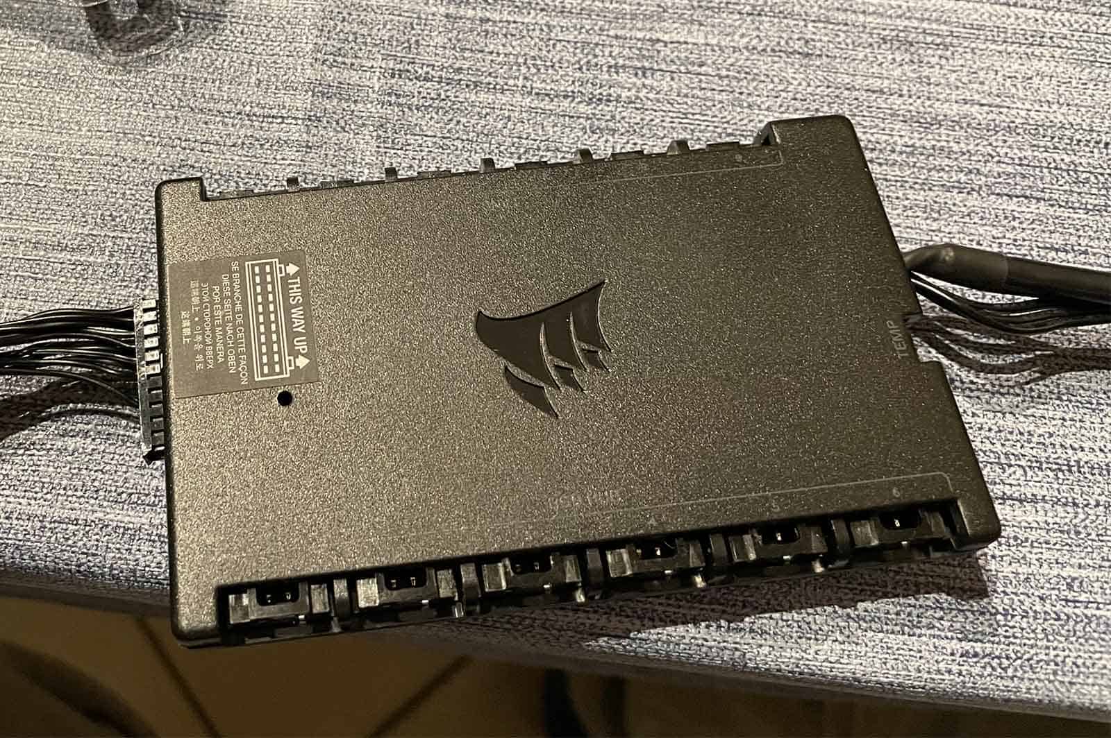 Parlons tout d’abord de la compatibilité du Corsair H150i Elite Capellix XT qui peut être installé sur la majorité des processeurs Intel et AMD. À savoir que l’installation de la pompe variera selon le modèle, mais pas de panique puisque toutes les fixations sont livrées avec le watercooling. Je tiens d’ailleurs à signaler que j’ai un Ryzen 7 et que j’ai trouvé l’installation beaucoup plus facile qu’avec mon ancien H100i Pro. Et pour cause, la pompe vient désormais se visser à la backplate le plus simplement du monde. Ajoutons à ça la pâte thermique pré-appliquée sur la partie qui rentre en contact avec le processeur et on se rend compte immédiatement que le tout est un véritable jeu d’enfants. D’autant plus que si vous optez pour cette version, vous aurez 3 ventilateurs RGB accompagnés d’un boitier de commande iCUE. Ça a pour avantage d’encore plus simplifier la chose étant donné que presque toute la connectique vient s’y greffer.