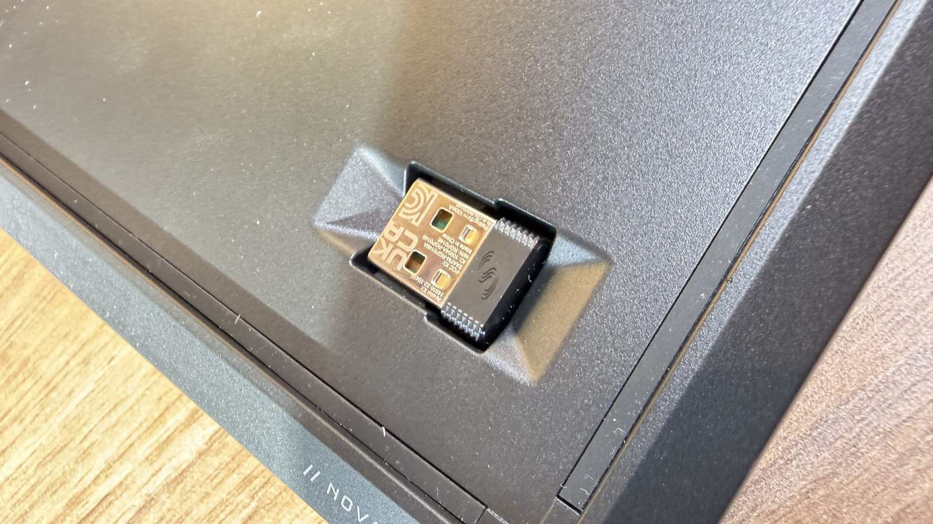 J’ai particulièrement apprécié le souci du détail pratique. Le dongle USB Slipstream est astucieusement dissimulé dans un logement sous l’appareil, ce qui évite de le perdre entre deux sessions chez des potes. En main (ou plutôt sur les genoux), le poids est parfaitement équilibré. Comme je l’évoquais dans mon test du Razer Kitsune, un contrôleur leverless n’a pas besoin d’être un enclume de 5 kg comme un stick arcade classique, car on n’exerce pas de tension latérale sur un levier. Le Novablade Pro reste bien en place sans pour autant vous couper la circulation dans les jambes.