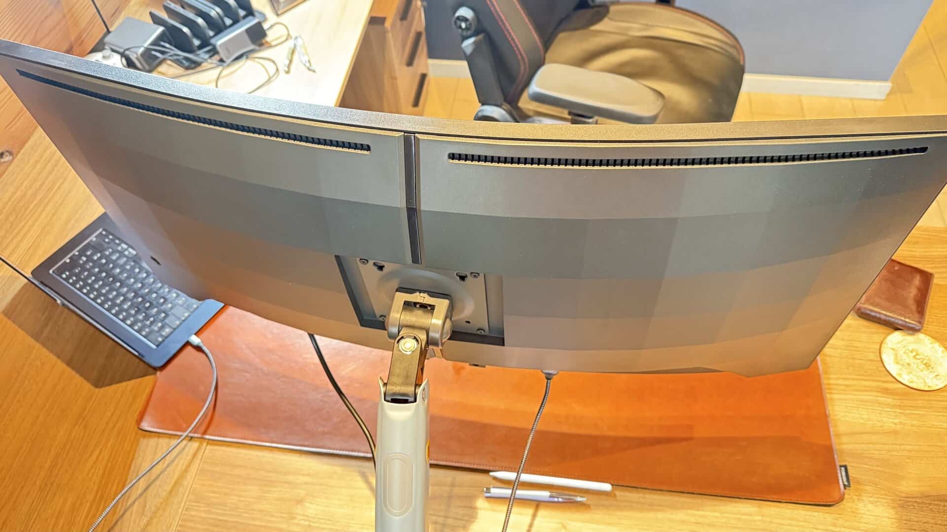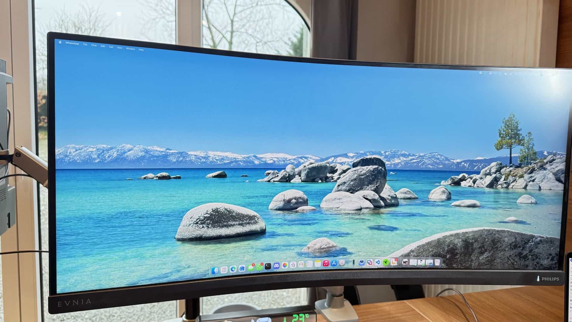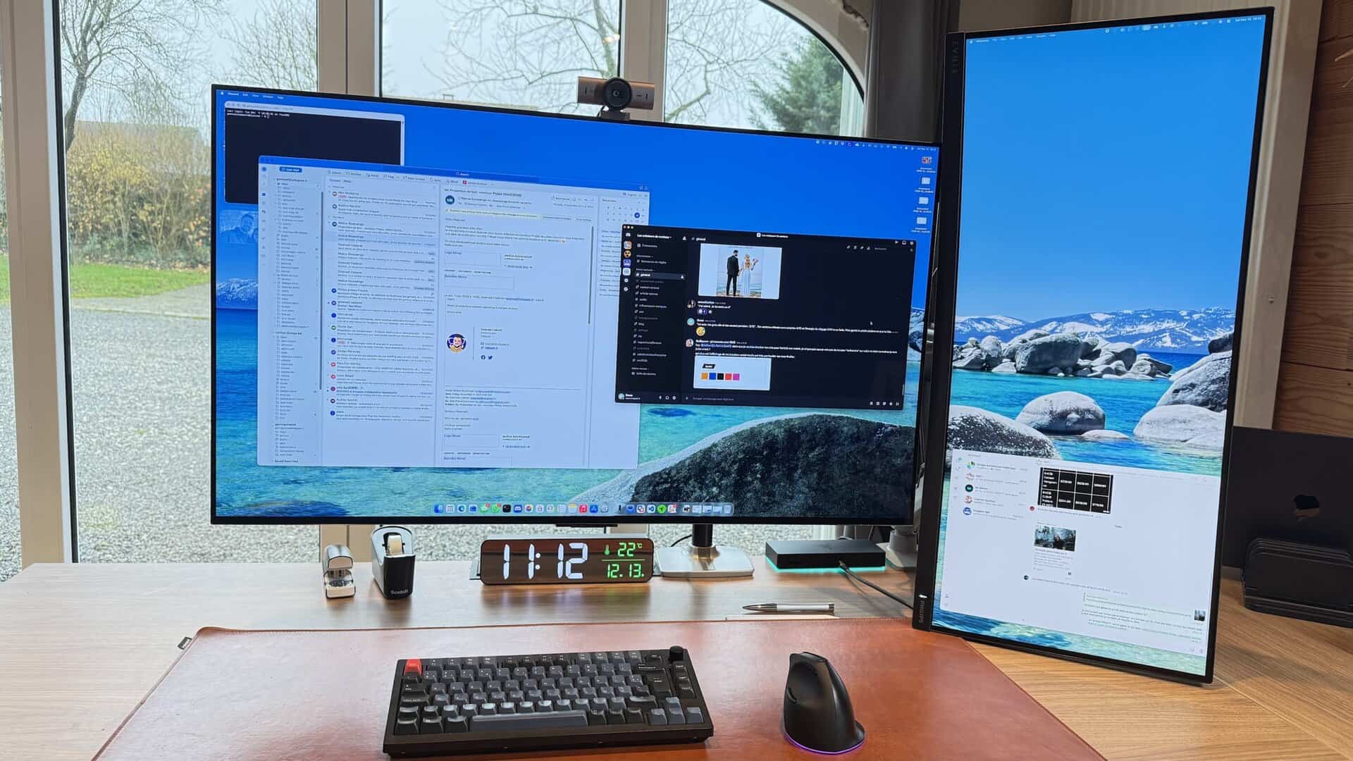 Mais là où je me suis éclaté, c’est dans mon usage un peu « atypique ». J’ai monté cet écran à la verticale à côté de mon OLED horizontal. Avec sa hauteur (ou largeur, du coup) de 34 pouces, cela me permet d’afficher l’équivalent de trois fenêtres carrées l’une sur l’autre (Slack, Spotify, Mail par exemple). Pour le multitâche, c’est une configuration divine. Évidemment, que vous l’utilisiez en horizontal (classique) ou en vertical, je vous recommande chaudement l’investissement dans un bras articulé. Le pied d’origine fait le job, mais un bras permet de le positionner à la hauteur parfaite et de libérer le bureau. Une fois qu’on y a goûté, ce format devient indispensable au quotidien.
