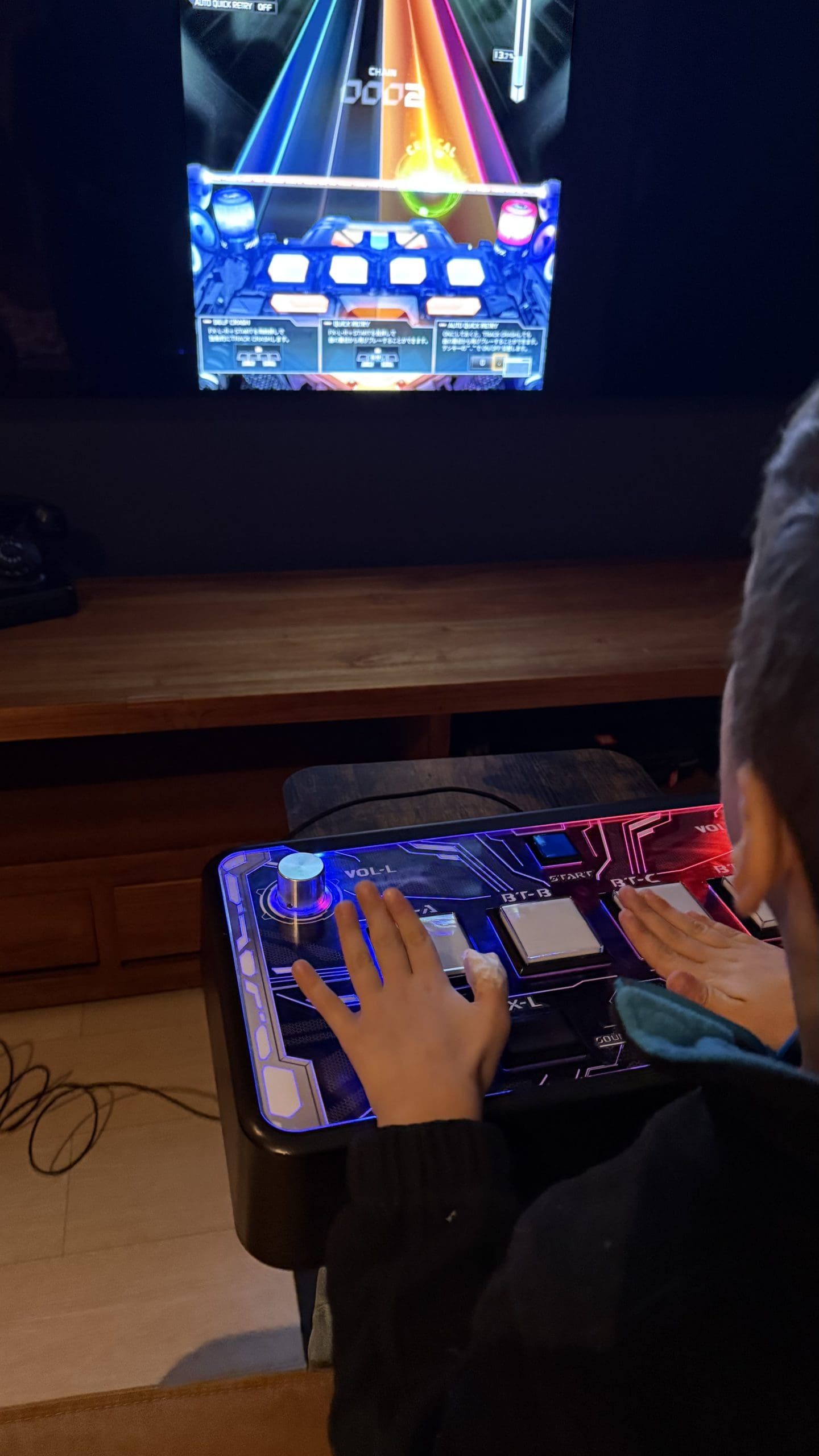 En jeu, la différence se fait instantanément sentir grâce aux encodeurs “Calt”. J’ai retrouvé cette sensation de fluidité absolue sur les potentiomètres (les fameux knobs) que j’avais adorée sur la borne en Asie. Contrairement à des modèles moins chers où l’on sent parfois des crans ou une résistance artificielle, ici, ça glisse tout seul. J’ai enchaîné les tracks à haute vitesse et le temps de réponse des boutons est tout simplement dingue. On tape, ça valide, zéro latence perceptible.