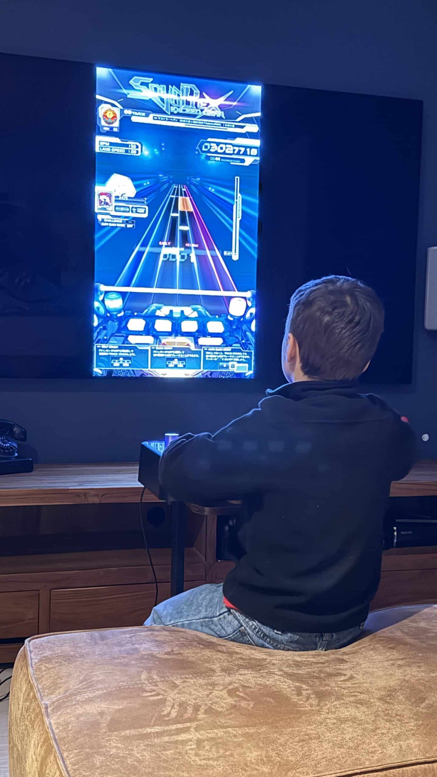 Quel plaisir de retrouver Sound Voltex ! Pour ceux qui me suivent, vous savez que j’ai eu un véritable coup de cœur pour ce jeu de rythme il y a deux ans lors d’un voyage en Asie. La borne d’arcade est tout simplement incroyable et, depuis mon retour, mes enfants me réclament sans cesse d’y rejouer. J’ai bien tenté de ressortir ma vieille Xbox 360 et Guitar Hero pour compenser, mais soyons honnêtes : Sound Voltex a totalement ringardisé le concept des guitares en plastique. Il me fallait du lourd pour retrouver ces sensations à la maison.
