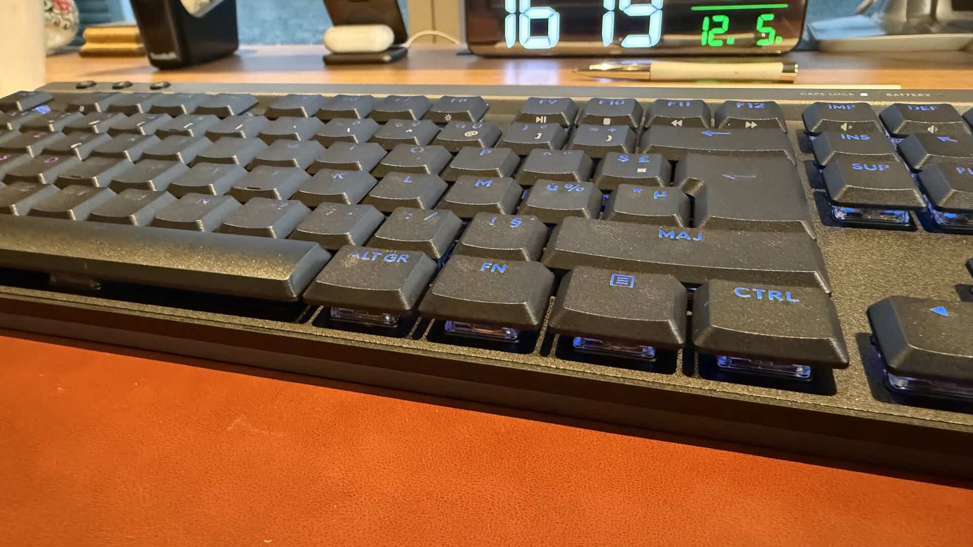 Lors de nos tests, le Logitech G515 LIGHTSPEED TKL s’est démarqué par ses excellentes sensations de frappe et son format compact. Les commutateurs mécaniques GL offrent une réponse rapide et fluide, parfaite pour les jeux d’action ou les longues sessions de travail. Le design ultra-plat apporte un confort notable, réduisant la fatigue des poignets tout en maintenant des performances de haut niveau.