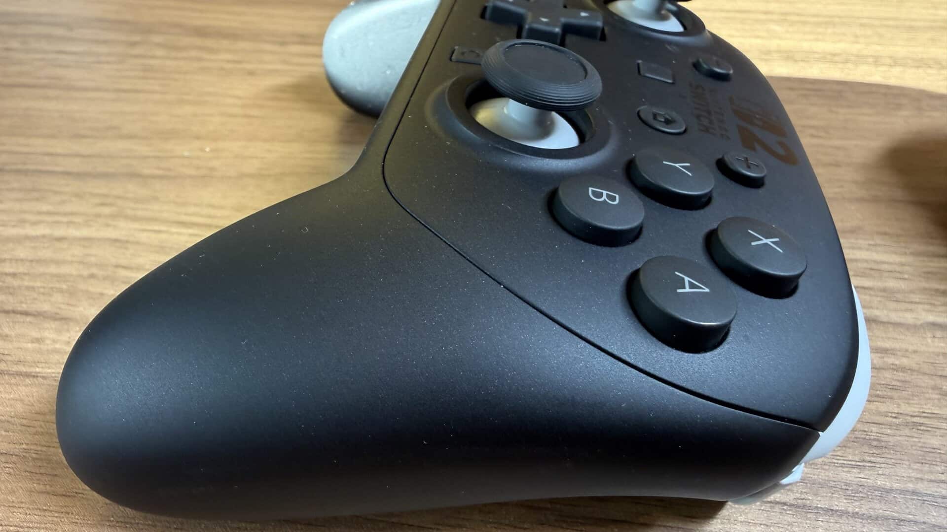 Visuellement, elle semble un poil plus petite ou, du moins, plus compacte que son aînée. Elle tombe littéralement dans la main. J’ai aussi remarqué que les boutons de façade (A, B, X, Y) sont plus gros et plus plats, ce qui rend les appuis beaucoup plus francs. La qualité d’assemblage est redoutable : quand on la secoue, rien ne bouge, pas un bruit de maracas. C’est dense, c’est solide, et ce noir mat profond lui donne un look bien plus sérieux.