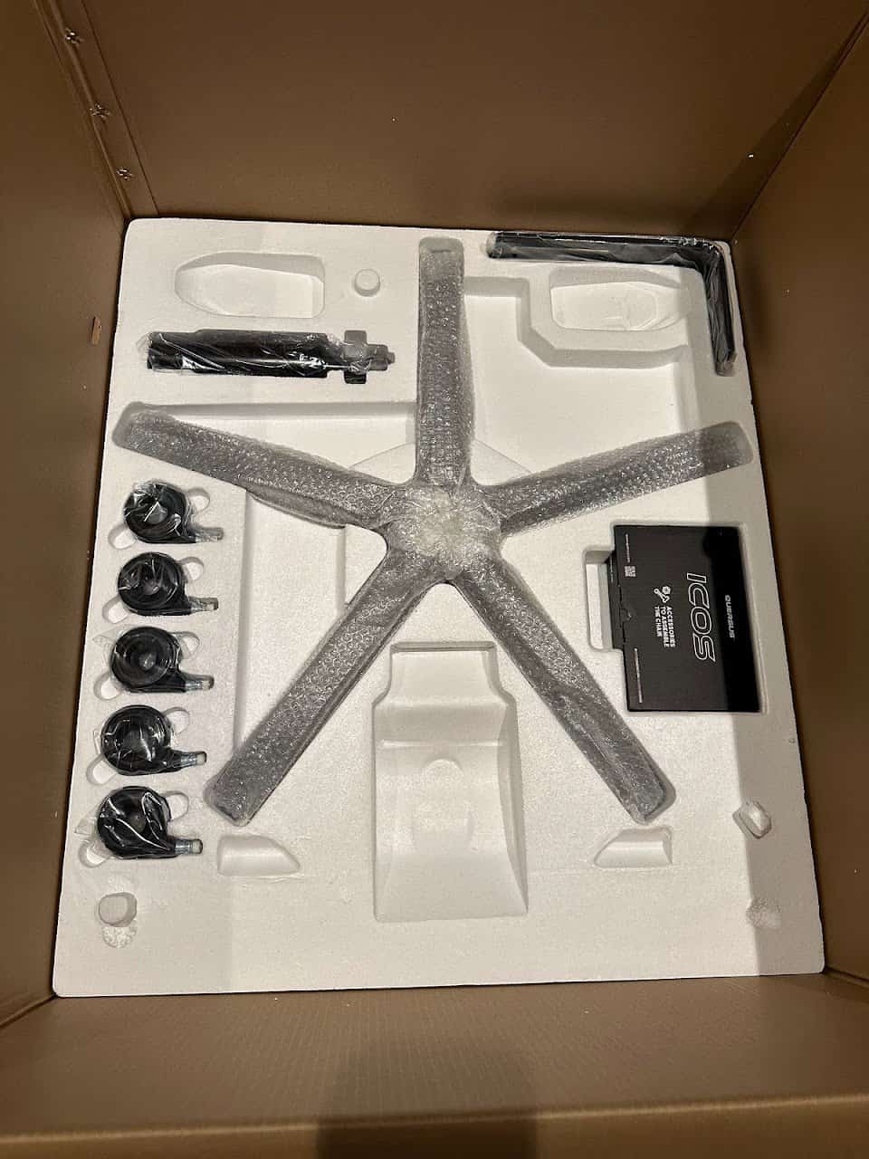 Au niveau du déballage et de l’assemblage de la Quersus Icos, pas de réelle difficulté à signaler. Bon, ce n’était évidemment pas ma première chaise, mais l’ensemble est livré avec une grande pancarte reprenant les différentes étapes d’assemblage, les vis ainsi que les différents éléments se repèrent facilement et des outils sont fournis pour réaliser l’assemblage.