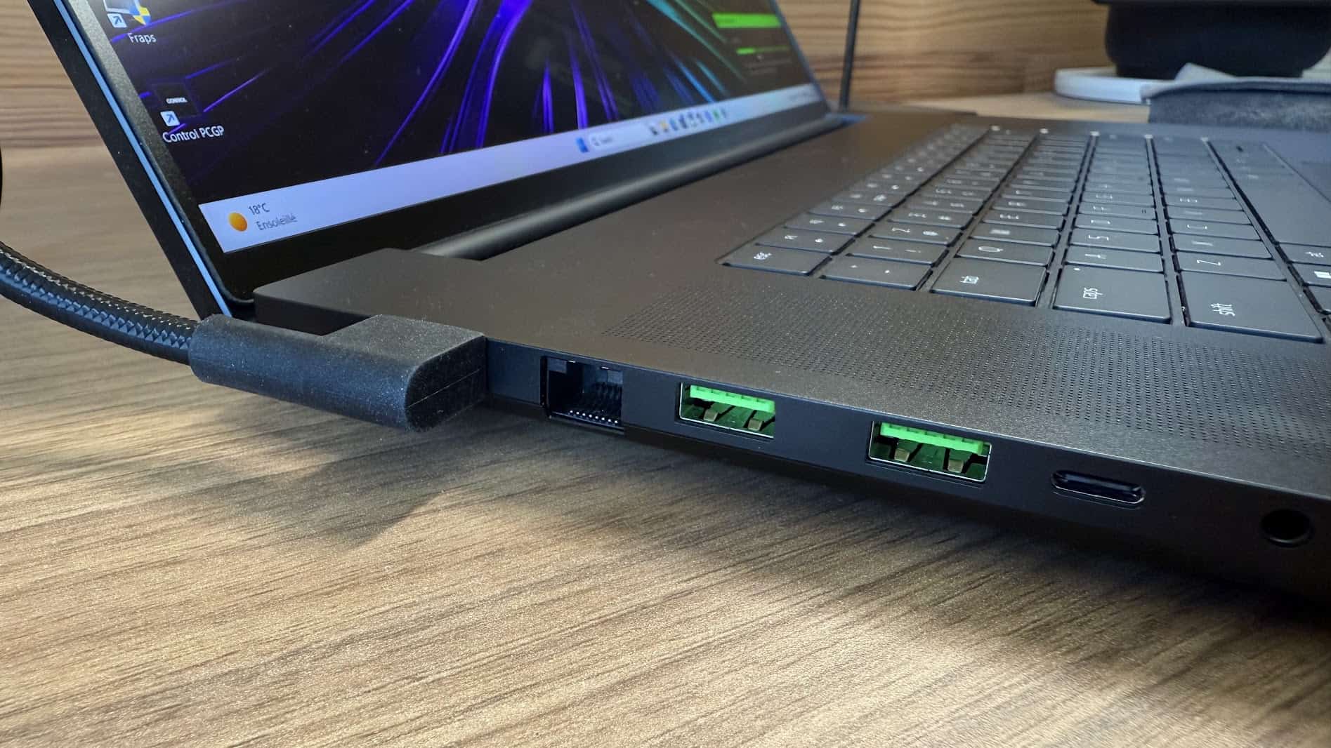La présence d’une RTX 4090 mobile n’est pas un simple argument marketing : elle transforme le Blade 18 en véritable bête de course. Avec ses 16 Go de VRAM GDDR6 et un TGP à 175 W, elle offre des performances de très haut vol pour du jeu en QHD+ voire en 4K. Associée au DLSS 3 et au ray tracing de nouvelle génération, elle permet de découvrir les titres AAA dans des conditions proches d’une config fixe avec RTX 4080/4090 de bureau. Pour les créateurs, c’est aussi un vrai plus sur les logiciels lourds comme Blender, Premiere Pro ou DaVinci Resolve, où l’accélération GPU fait merveille. Attention toutefois à la chauffe et au bruit : la ventilation se fait entendre, mais reste maîtrisée
