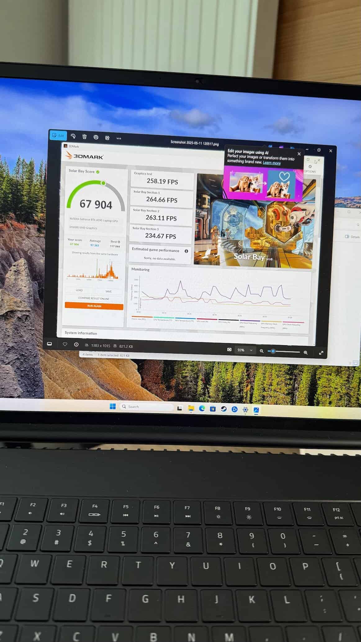Dans l’ensemble je trouve que ce razer 18 est un super PC portable de type transportable, véritable station de travail et ordinateur méga puissant. Je l’utilise d’ailleurs de cette manière car en plus de me permetttre de jouer, il heberge plusieurs machines virtuelles VMWare pour mes entrainements en ce moemnt. Il a tendance à être assez bruyant dès qu’on lance un jeu, mais impossible de faire autrement avec une 4090 dans un si petit espace. Avec un peu de son ou un casque, pas de problème. Je pense qu’il fait déjà le max que l’on puisse faire et vous laisse admirer les importants dispositifs de ventillations sous le monstre :