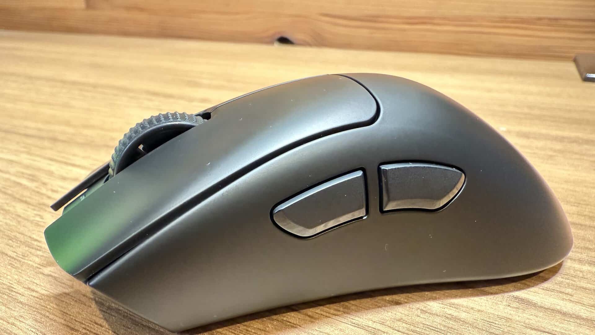 Dès que je l’ai sortie de sa boîte, la DeathAdder V4 Pro m’a bluffé par sa légèreté. À 56 g, on est clairement dans le territoire des souris ultralight, mais sans le design perforé qui rebute certains joueurs. La forme est légèrement différente de la Viper V3 Pro, et pour ma main, c’est un vrai plus : la prise en main est naturelle, le poignet se place bien, et les longues sessions se font sans fatigue.