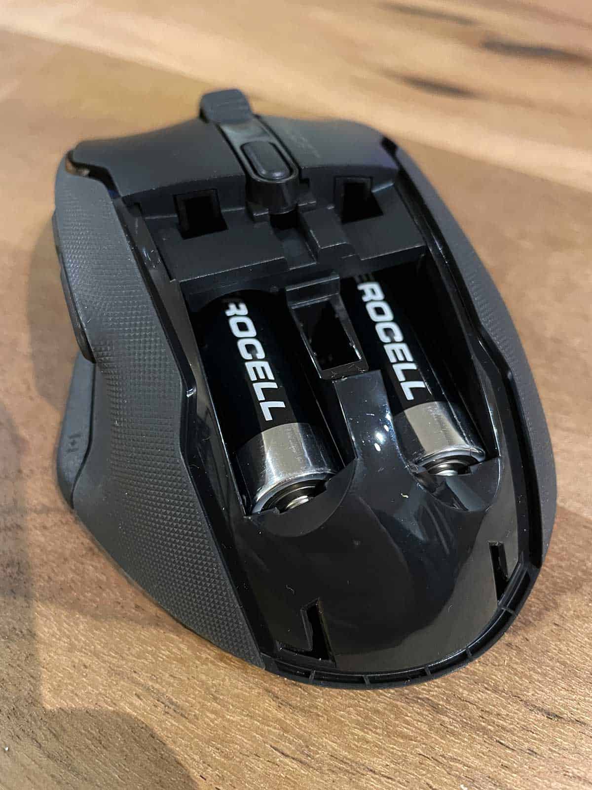 L’atout principal de la Roccat Kone Air est son autonomie de 800 heures. Pratiquement, cela signifie qu’il est possible d’utiliser cette souris sans-fil pendant plus d’un mois sans avoir à la recharger. À savoir que le tout fonctionne avec une ou deux piles AA et que forcément, ça a une conséquence sur le poids et l’autonomie de la souris. Signalons aussi qu’il est possible de passer de la technologie Stellar Wireless 2,4 GHz qui propose une faible latence au Bluetooth 5.1 pour une utilisation plus casual d’une simple pression de bouton. Ceci étant dit, et avec une autonomie aussi impressionnante, je ne pense pas qu’il soit réellement nécessaire de pinailler pour optimiser sa batterie. On pourra dès lors rester en 2.4 GHz sans vraiment se prendre la tête, ce que je trouve assez sympa.