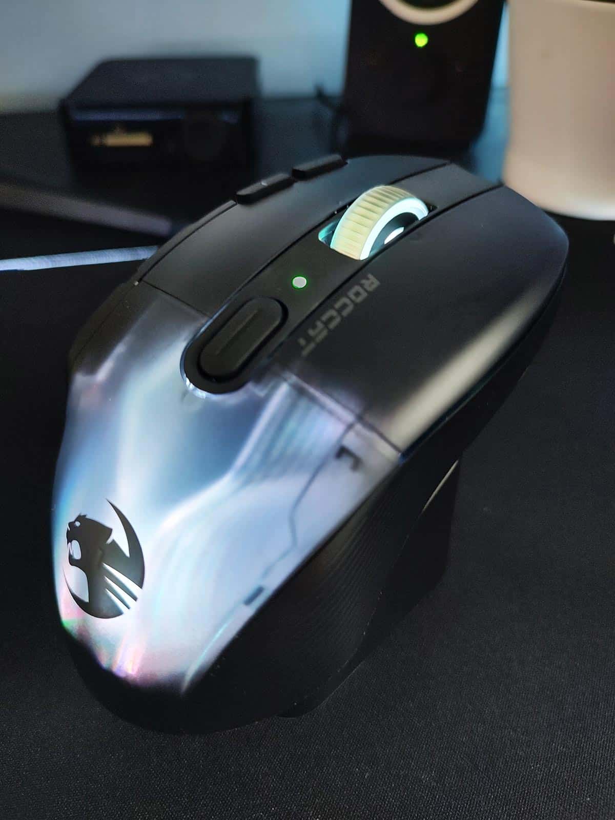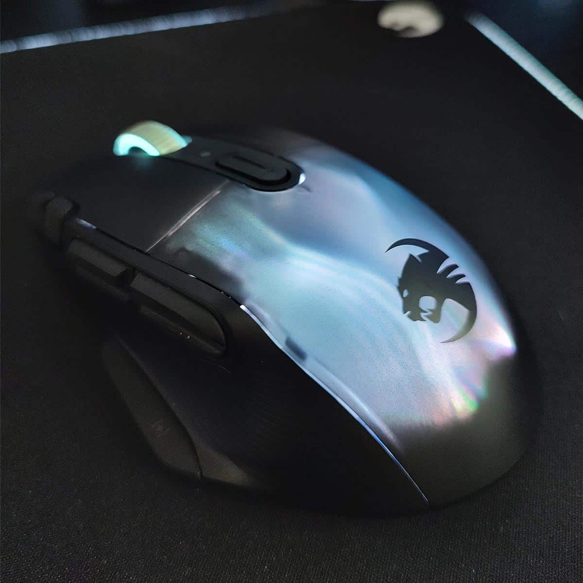 À ce propos, notons aussi qu’il est possible de switcher entre une connexion sans-fil 2,4 GHz pour jouer sans latence et du Bluetooth pour une utilisation plus détendue. C’est cool, car ça permet aussi d’économiser la batterie. Finalement, parlons des switchs et du capteur qui sont toujours d’excellente facture chez Roccat. De fait, on retrouve comme d’habitude des interrupteurs optiques Titan et un capteur Owl-Eye de 19 000 DPI, ce qui promet performance et précision.