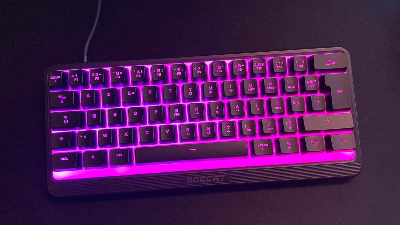 Au vu des derniers modèles que j’ai testés récemment, il est indéniable de constater que les claviers 60% ont la cote. Cependant, ces derniers sont pour la plupart tous mécaniques, ce qui veut dire qu’ils sont souvent assez onéreux. Roccat a dès lors compris que proposer un clavier mini à membrane était une excellente idée. En effet, cela permettra aux gameurs les moins fortunés de pouvoir optimiser leur espace de jeu, tout en jouissant d’un magnifique périphérique RGB comme la célèbre marque allemande en a le secret. D’autant plus que si on ne joue pas spécialement à des titres compétitifs, un clavier à membrane comme le Roccat Magma Mini peut s’avérer très satisfaisant. Et pour cause, si l’on n’est pas regardant, le tout peut s’avérer réactif tout en restant silencieux, ce qui n’est pas négligeable si l’on joue à proximité de ses proches.