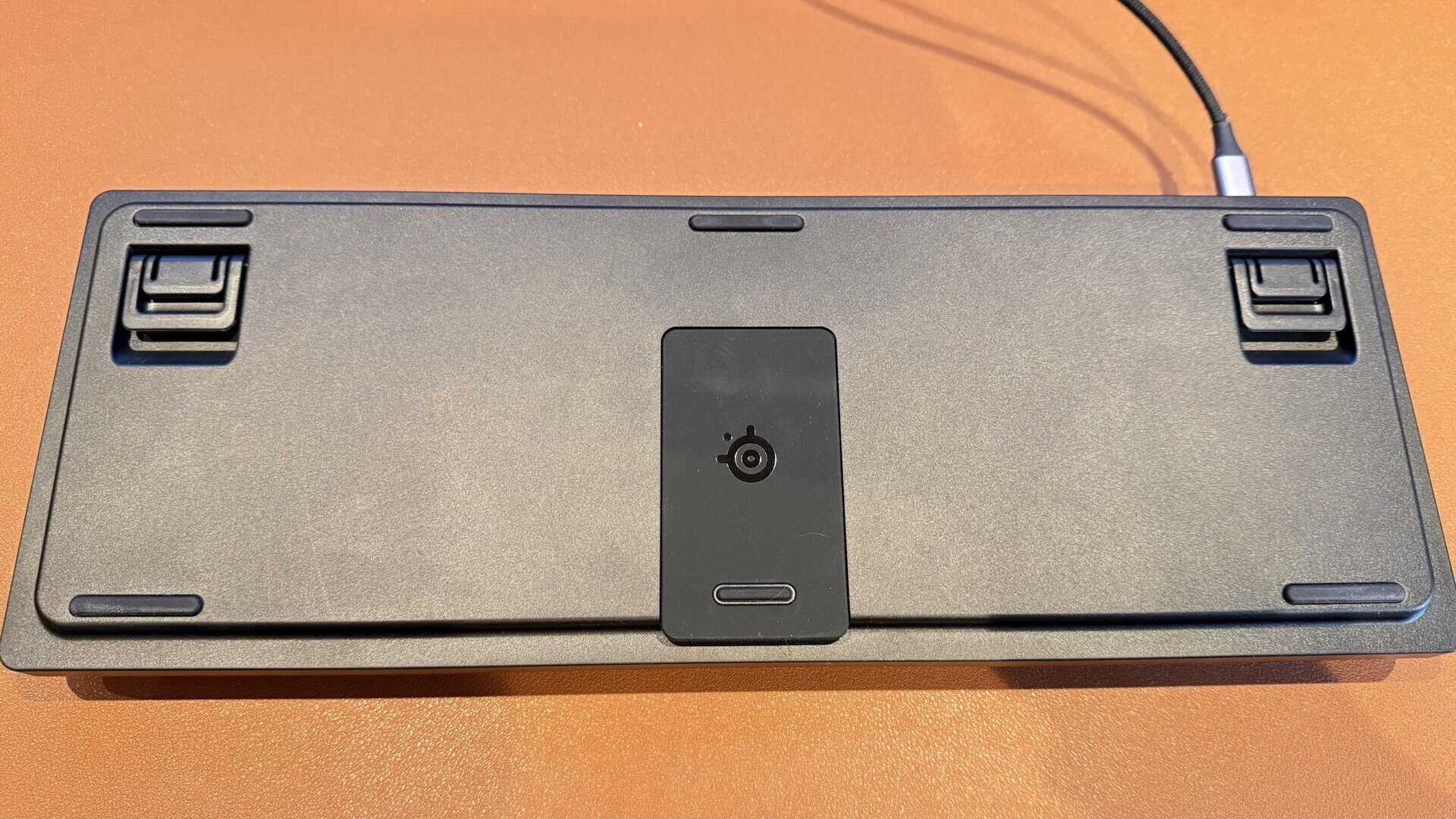 Un détail m’a particulièrement séduit : l’intégration du support pour enlever les touches. C’est souvent le genre de petit accessoire qu’on perd au bout de deux jours dans un tiroir, mais ici, Steelseries a eu la bonne idée de lui prévoir une place dédiée. La finition globale est exemplaire, les bords sont nets et le design TKL permet de gagner un espace précieux pour les mouvements de souris, ce qui est crucial pour les joueurs de FPS.