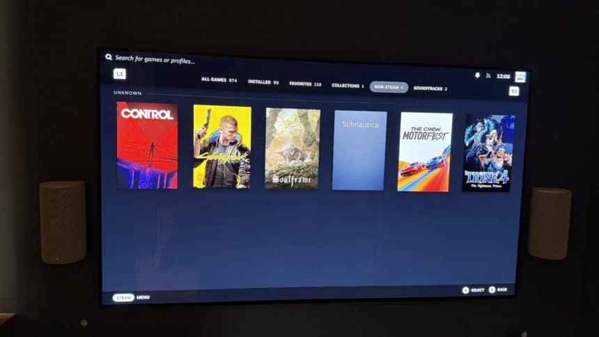 J’ai pu uniformiser l’apparence globale de mon mode Big Picture. J’ai ajouté des illustrations officielles pour mes jeux Epic, et j’en ai même profité pour remplacer certaines jaquettes Steam officielles que je trouvais hideuses par des versions “Minimalistes” ou “Néons” créées par la communauté. Le résultat sur la TV du salon est bluffant : on a vraiment l’impression d’avoir affaire à l’interface d’une PlayStation 5 ou d’une Xbox Series X, mais avec la liberté totale du PC.