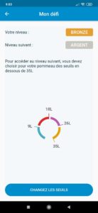 C’est également via l’application que vous pourrez changer les différentes couleurs pour les seuils avec 8 couleurs disponibles. De plus, outre la possibilité de voir vos stats de consommation mais aussi vos économies réalisées sur les 500 dernières douches, vous pourrez également définir des défis. En baissant vos seuils de consommation, vous obtiendrez des médailles. Rendant le tout encore plus ludique pour tous.