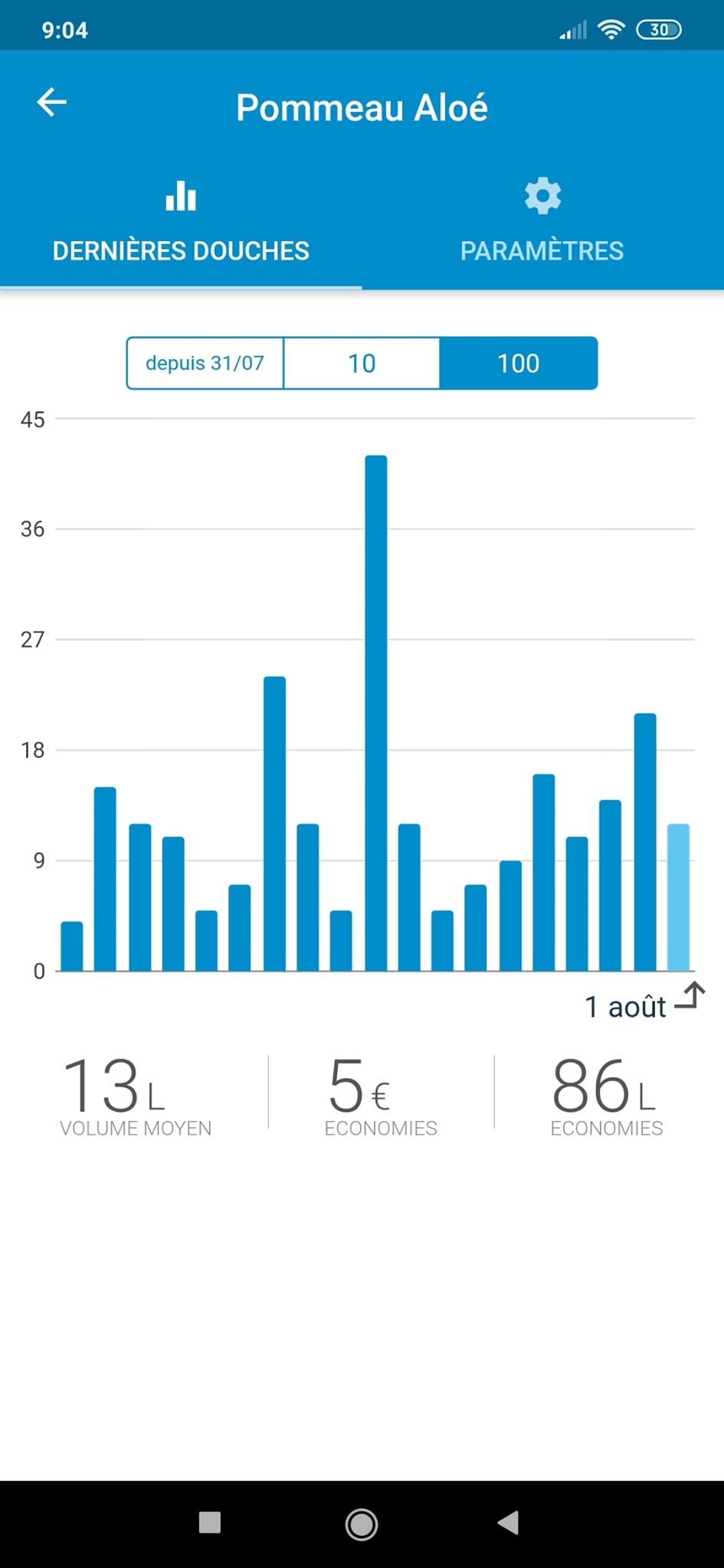 Mon seul regret avec l’app est qu’il ne soit pas encore possible pour l’instant de voir la consommation couplée. On utilise souvent le ciel de douche pour commencer et le pommeau pour terminer. Il serait donc top de pouvoir combiner la consommation totale. Mais je n’ai aucun doute que cela ne saurait tarder.