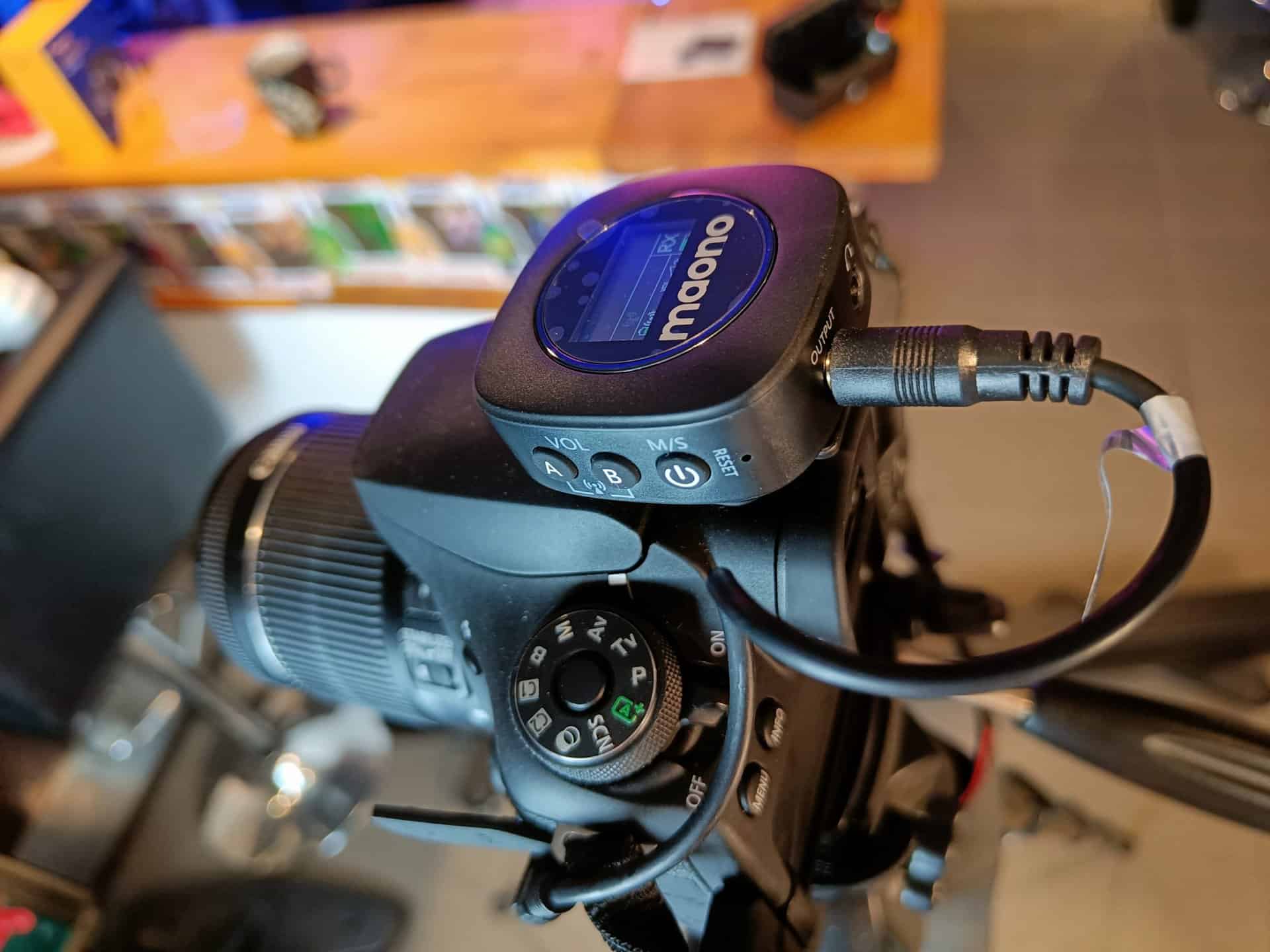 Vous pourrez envisager un enregistrement de qualité sur une cinquantaine de mètres de distance donc le sans fil fait le job. Voici un exemple d’enregistrement effectué avec le Maono WM821, avec le micro Lavalier branché à l’émetteur et le gain réglé sur 6. La prise est réalisée en intérieur, avec des bornes arcade bruyantes allumées autour de moi.