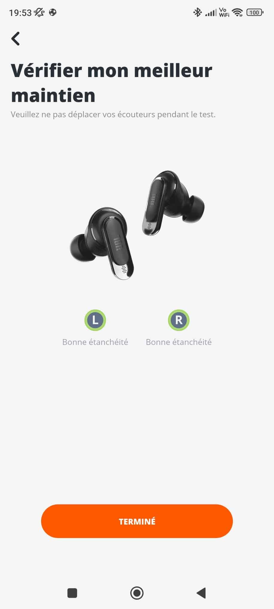 L’appairage se fait réellement hyper facilement, il vous suffit d’activer le Bluetooth sur votre smartphone, d’ouvrir le boitier, de trouver les écouteurs dans la liste et c’est parti. Vu le boitier intelligent, l’app JBL est un peu moins indispensable, mais je ne peux que vous conseiller de l’installer quand même. Celle-ci vous permettra, en effet, lors de votre première utilisation de calibrer les écouteurs pour un son optimal. Vous aurez bien sûr accès à toutes les autres fonctions classiques comme l’état de la batterie, les mises à jour disponibles, l’activation ou désactivation de l’annulation active de bruit, l’égaliseur…
