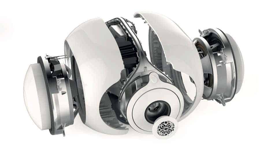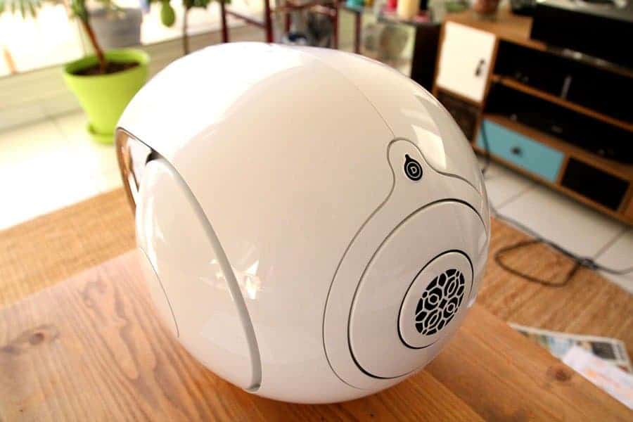 Ce vaisseau spatial du futur nâa quâun petit bouton Ă lâarriĂšre. Tout semble fluide et intuitif. Ă part un gros dĂ©tail : cet horrible cĂąble alim tout jaune. On dirait vraiment que Devialet lâa piquĂ© au chantier dâĂ cĂŽté !