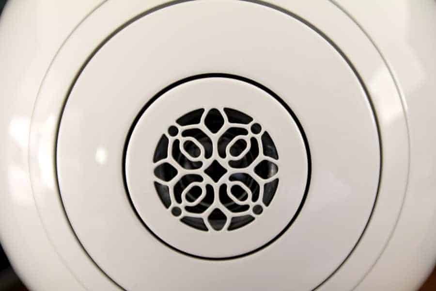 Le plus fascinant, câest son systĂšme de âgrandes oreillesâ, sur les cĂŽtĂ©s. Deux sphĂšres blanches qui se rĂ©veillent, et dansent au rythme des frĂ©quences basses. Une idĂ©e hyper magique pour « voir le son ». On reste facilement de longues minutes Ă observer ces mouvements hypnotiques.