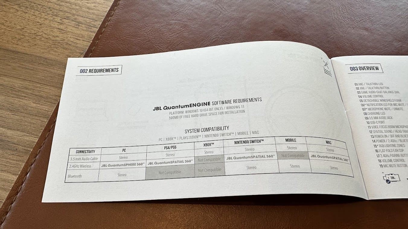 - avec dongle 2.4 GHz et JBL QuantumSPHERE 360