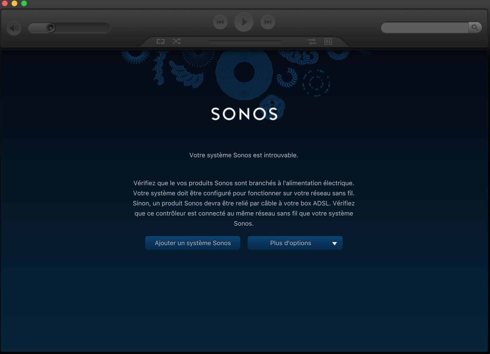 Le (minuscule) livret d’accueil oublie de dire comment ajouter de la musique. Par Itunes ? Ça marche pas. Via VLC ou Quicktime ? Non plus. On s’arrache les cheveux, à cliquer un peu partout dans la fenêtre Sonos pour Mac, dont l’interface graphique est presque aussi peu intuitive que l’ancêtre Winamp ! Miracle, après une aventure dans les forêts de sous-menus, on découvrira la fonction pour gérer une bibliothèque musicale, et la mettre à jour. Le truc qui mériterait un gros bouton rouge au milieu, logiquement.