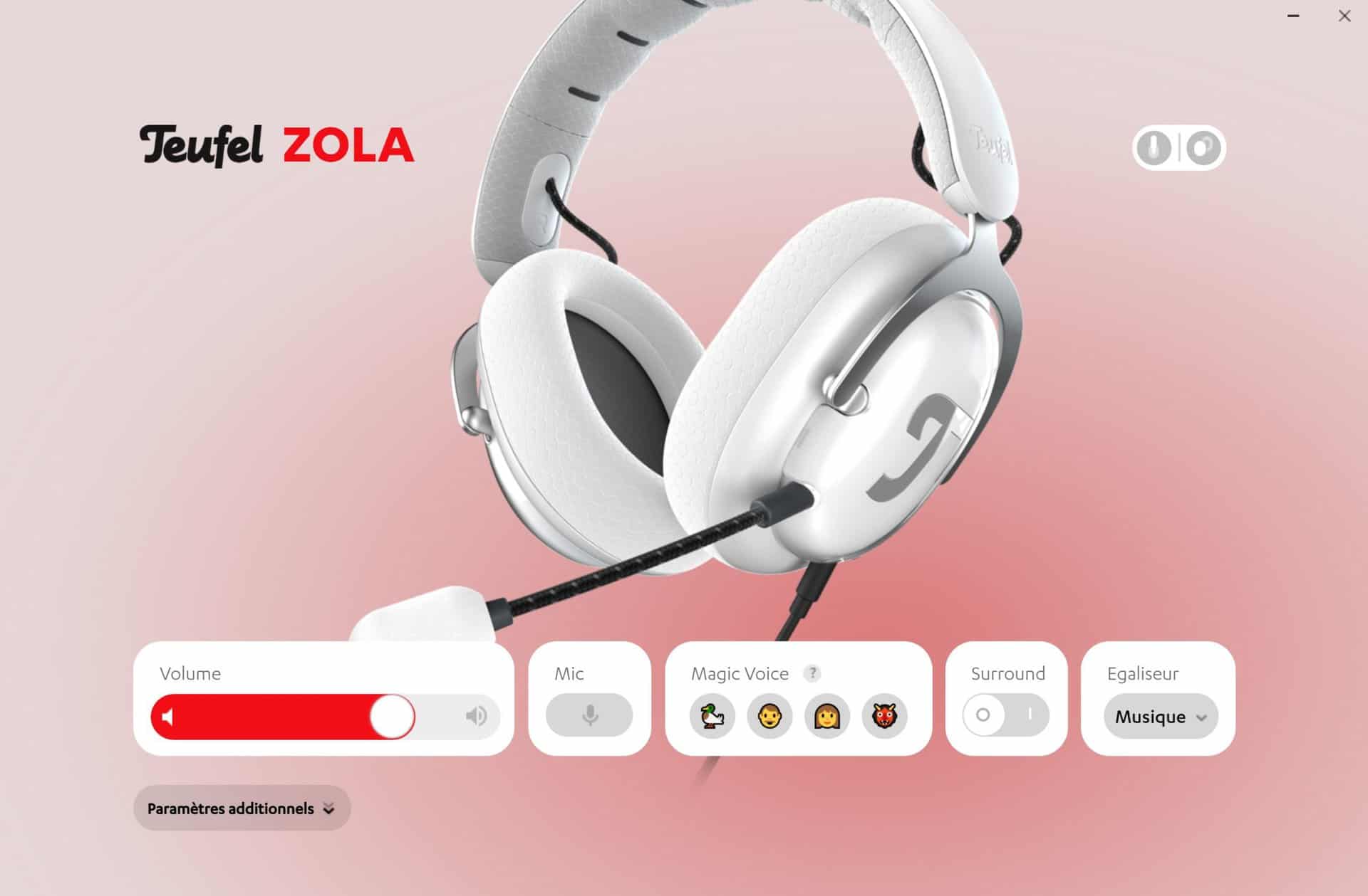 Sur PC, vous aurez un logiciel pour votre Teufel Zola. Pas indispensable mais pratique afin de régler le son, gérer l’égaliseur, activer le son surround ou encore mettre un filtre pour faire des voix étranges comme un canard, le diable…