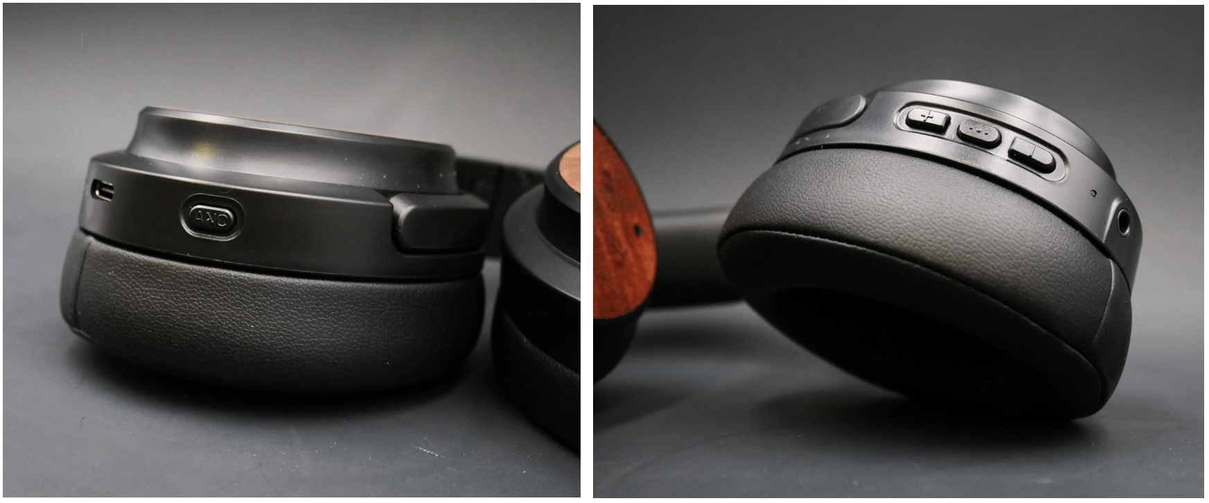 D’un côté, on trouve le bouton pour activer ou désactiver l’annulation de bruit ainsi que la prise USB-C pour la recharge.