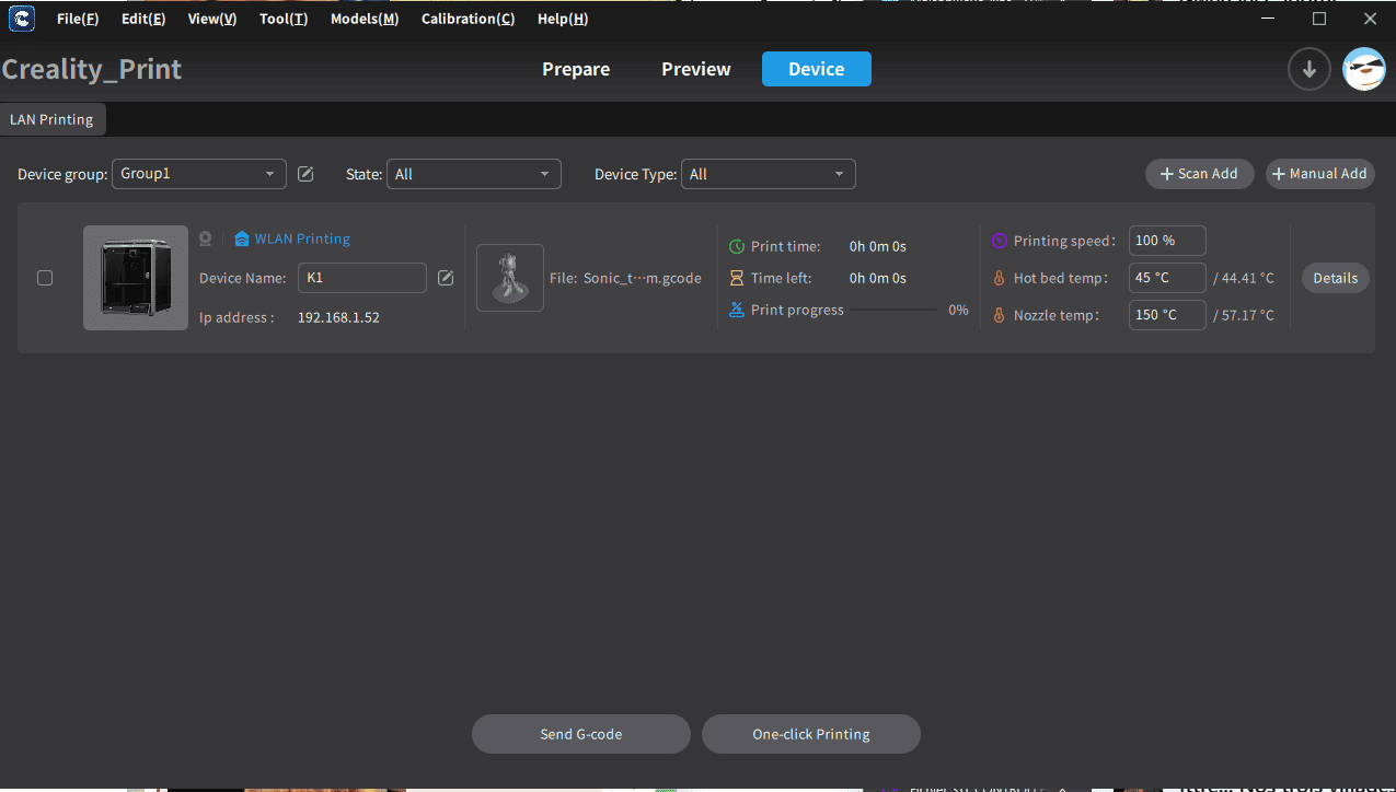 Après avoir installé le logiciel Creality Print, l’imprimante a été trouvée automatiquement par le réseau sans fil, et tout était configuré dans le profil et prêt à l’emploi sans la moindre opération de ma part.