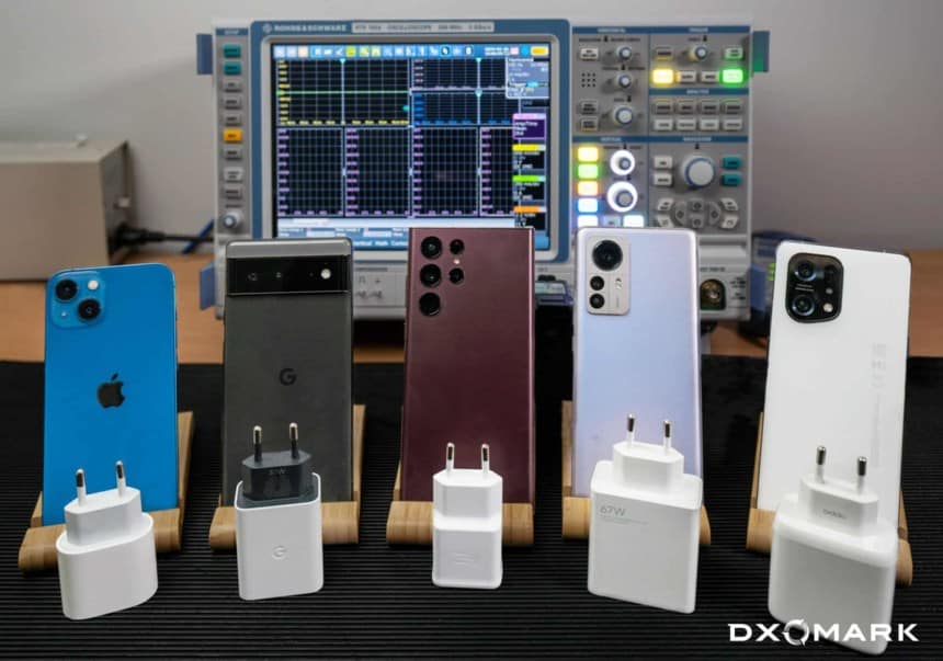 En fin d’année dernière, le Parlement européen a adopté la proposition visant à instaurer un port de charge unique pour tous les nouveaux smartphones et tablettes vendus en Europe, afin de réduire les déchets et l’empreinte carbone des produits électroniques dans l’Union européenne. D’ici à l’automne 2024, tous les nouveaux smartphones, tablettes, appareils photo et autres gadgets électroniques commercialisés dans l’UE devront être équipés d’un port de charge USB-C. Une régulation qui, combinée à la tendance de certains fabricants à retirer les chargeurs des boîtes de smartphones, va voir de plus en plus d’utilisateurs mélanger chargeurs et smartphones. Pour comprendre ce que cela implique en termes de compatibilité, DXOMARK a procédé à plusieurs tests et comparaisons, combinant chargeurs officiels et compatibles.