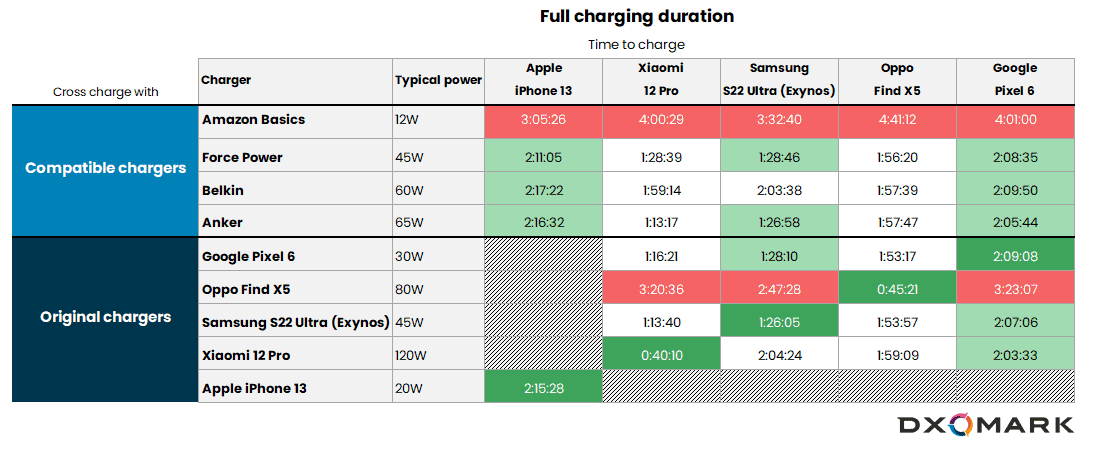 DXOMARK cross-charging tests – time to full charge