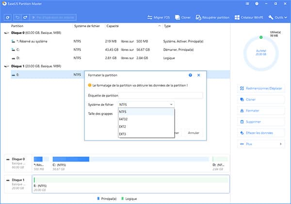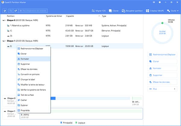 Comme ce n’est plus possible dans les dernières versions de Windows, il faut passer par un logiciel tiers. Une fois de plus, je vais utiliser un outil gratuit proposé par EaseUS (dont je vous avais déjà parlé pour la restauration de fichiers). EaseUS Partition Master Free est donc un utilitaire dédié au partitionnement des disques durs et clés USB très facile à utiliser.